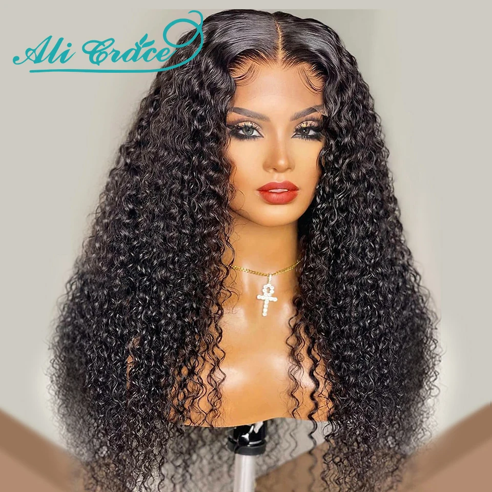 Парики Ali Grace, бразильские кудрявые вьющиеся человеческие волосы, предварительно выщипанные, 13x6 дюймов, парик с сеткой спереди, волосы Реми, глубокие кудрявые, парики спереди на сетке