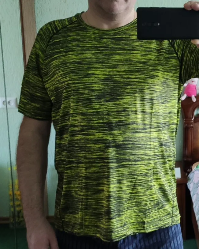 Прекрасная футболка для спортзала! Взял уже вторую. До этого брал в другом цвете. люблю свободную посадку, поэтому беру 7xl-идеально! (ОГ 120, ОТ 105, плечи 57, рост 182).