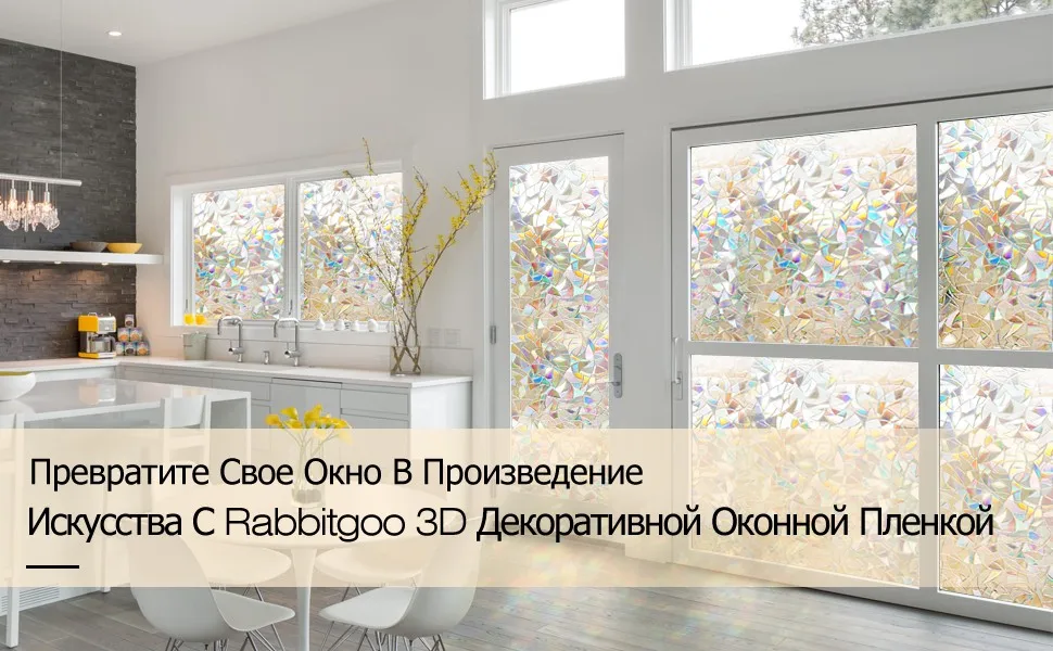Раскрасьте свой дом с помощью оконной пленки Rabbitgoo 3D Static Cling - красивые мозаичные узоры украсят ваше место, статическое приклеивание к поверхности без клея для дополнительной безопасности и удобства, простая установка в виде отрывной ручки, легкое снятие и повторное нанесение несколько раз.