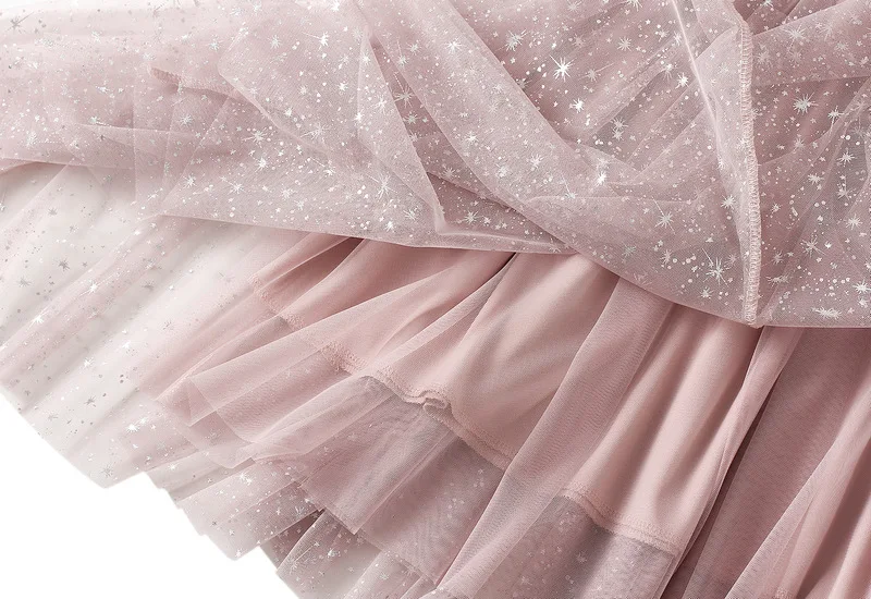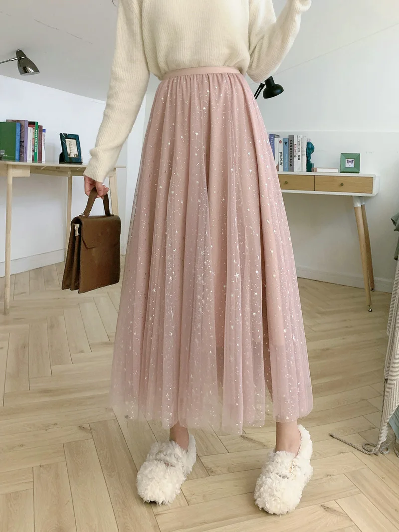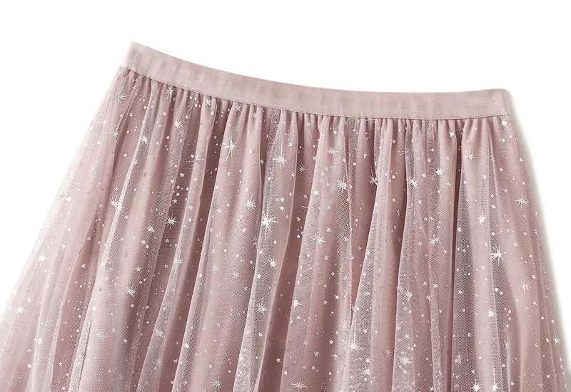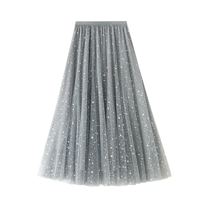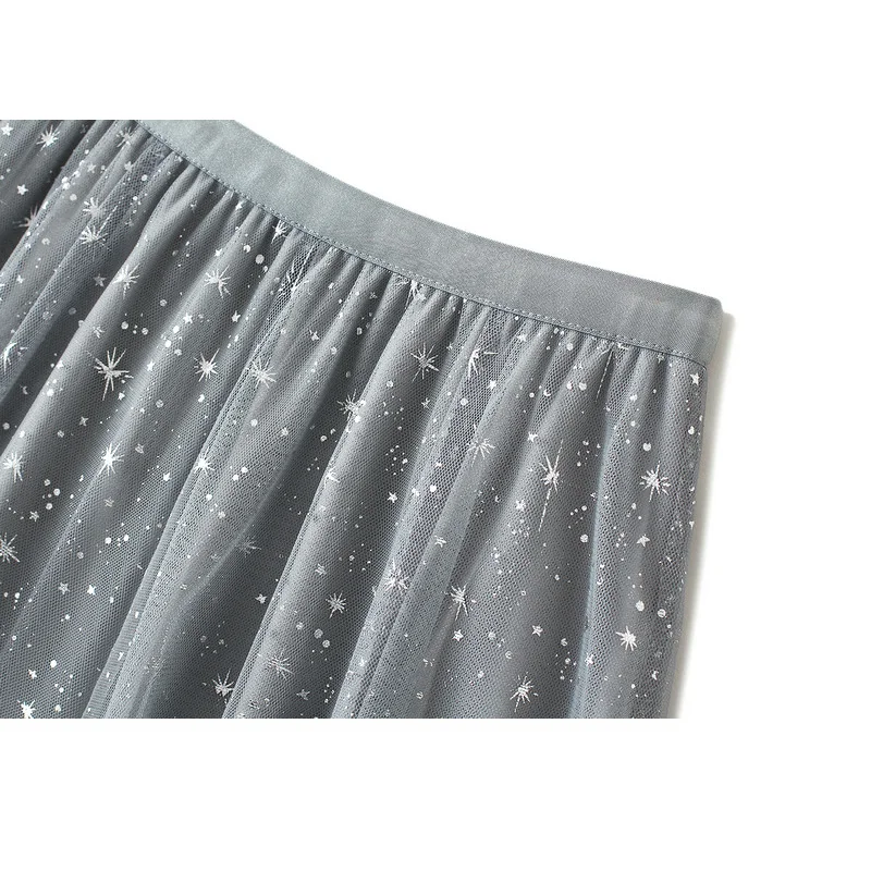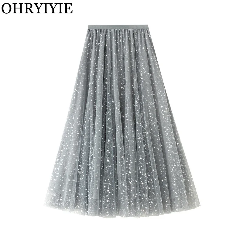 Длинная юбка OHRYIYIE, из тюля, с блестками, серая, эластичная, с высокой талией, весна-лето, 2021