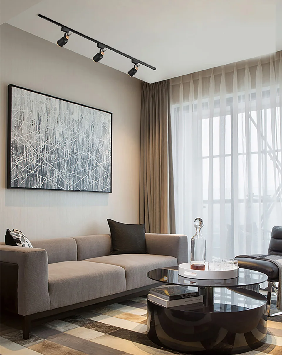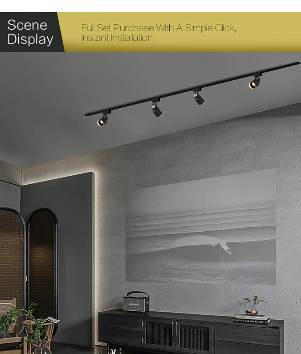 Шаги установки1. Закрепите трек на бронировании.2. Подключите домашние провода к источнику питания на корпусе лампы.3. Вставьте держатель лампы в дорожку с помощью переключателя застежки.4. Установлен.