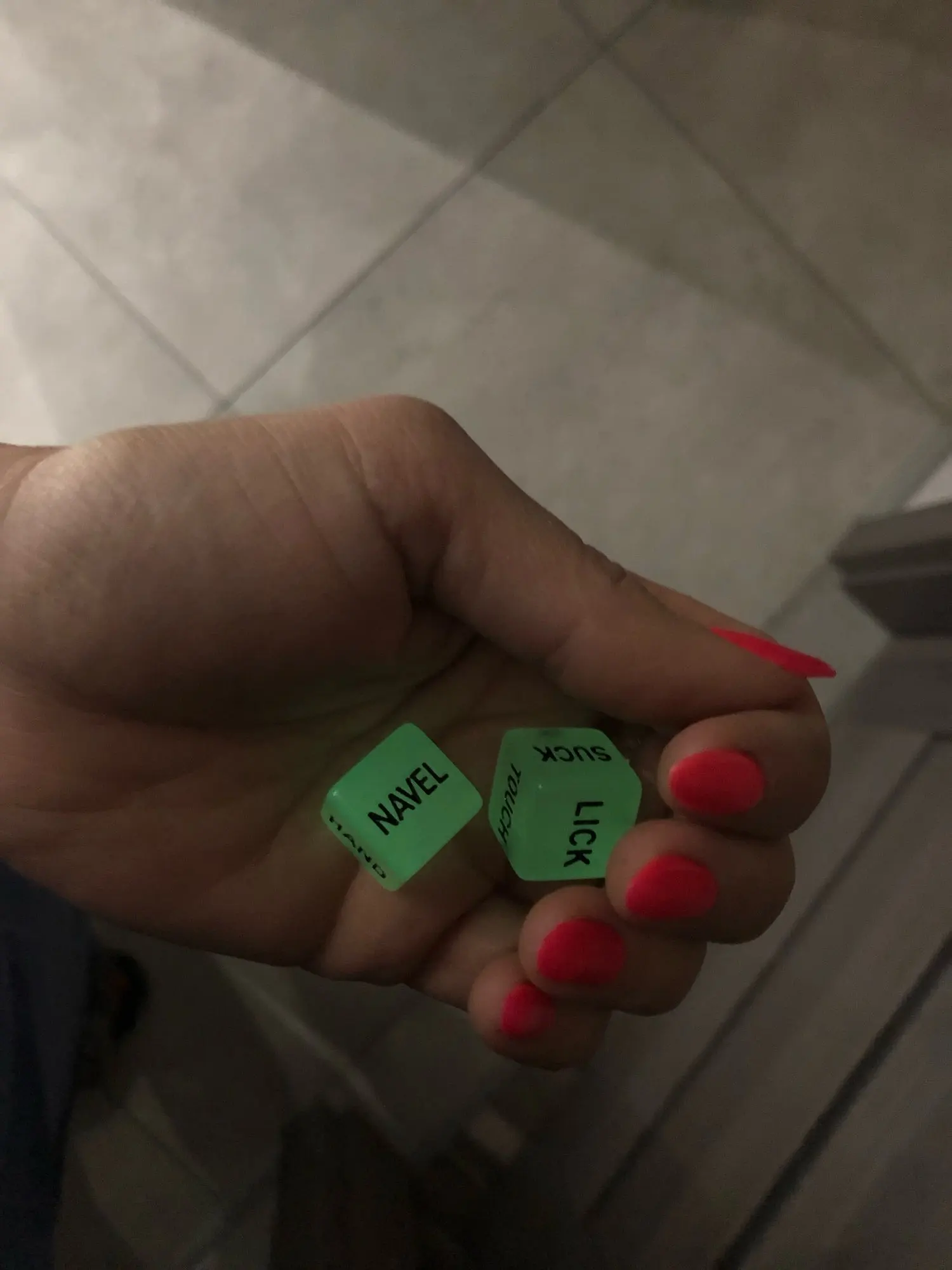 Вау, это действительно здорово, он светится в темноте, и это действительно забавная идея, как милая игра, чтобы играть со своим крупным другом. В основном это говорит вам делать то, что вы хотели бы сделать в любом случае, но были слишком напряжены, чтобы сказать или спросить, мне очень нравится концепция, как игральные кости, поэтому вы просто катитесь и получите одну из вещей (если это имеет значение), но да, в целом, мне это действительно нравится, Определенно рекомендую получить для вас и вашего партнера!