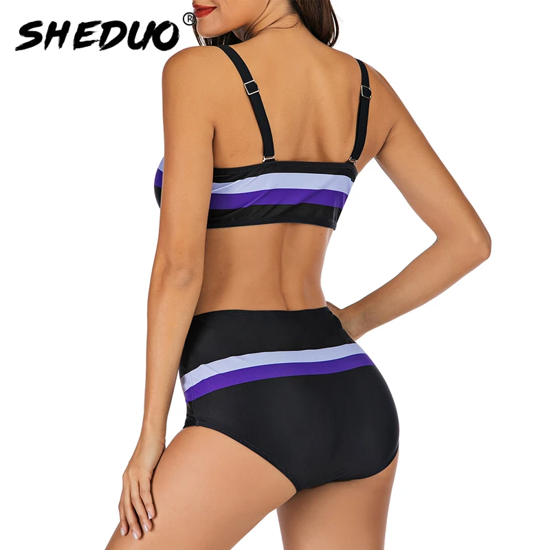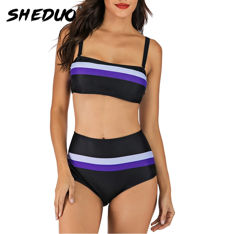 Женский градиентный пляжный купальник большого размера, женский купальный костюм на бретельках, женский купальник в полоску с мягкими чашечками