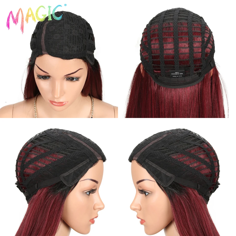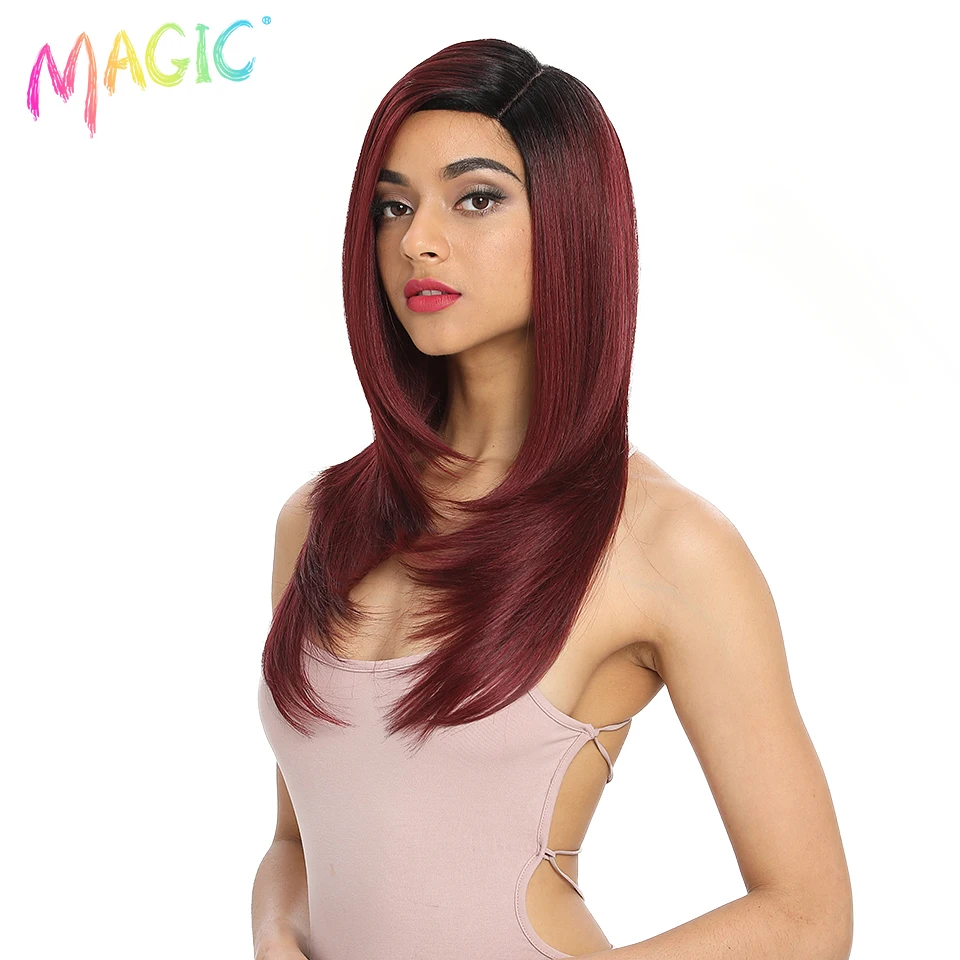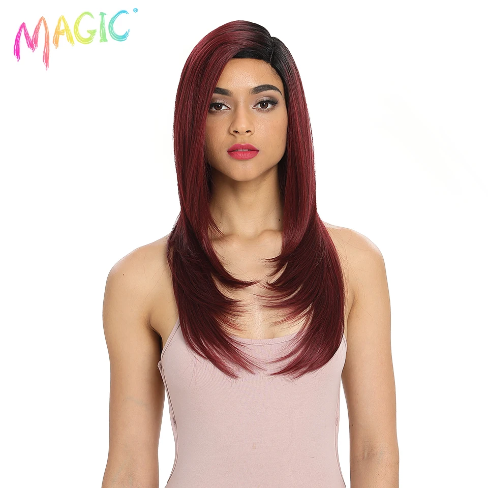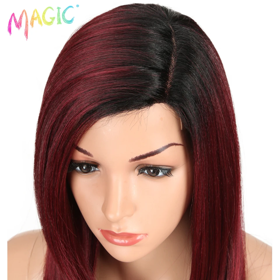 Волшебный 24 дюйма длинный прямой парик с боковой частью натуральные волны Омбре черный красный косплей парик Синтетический кружевной парик для чернокожих женщин Косплей