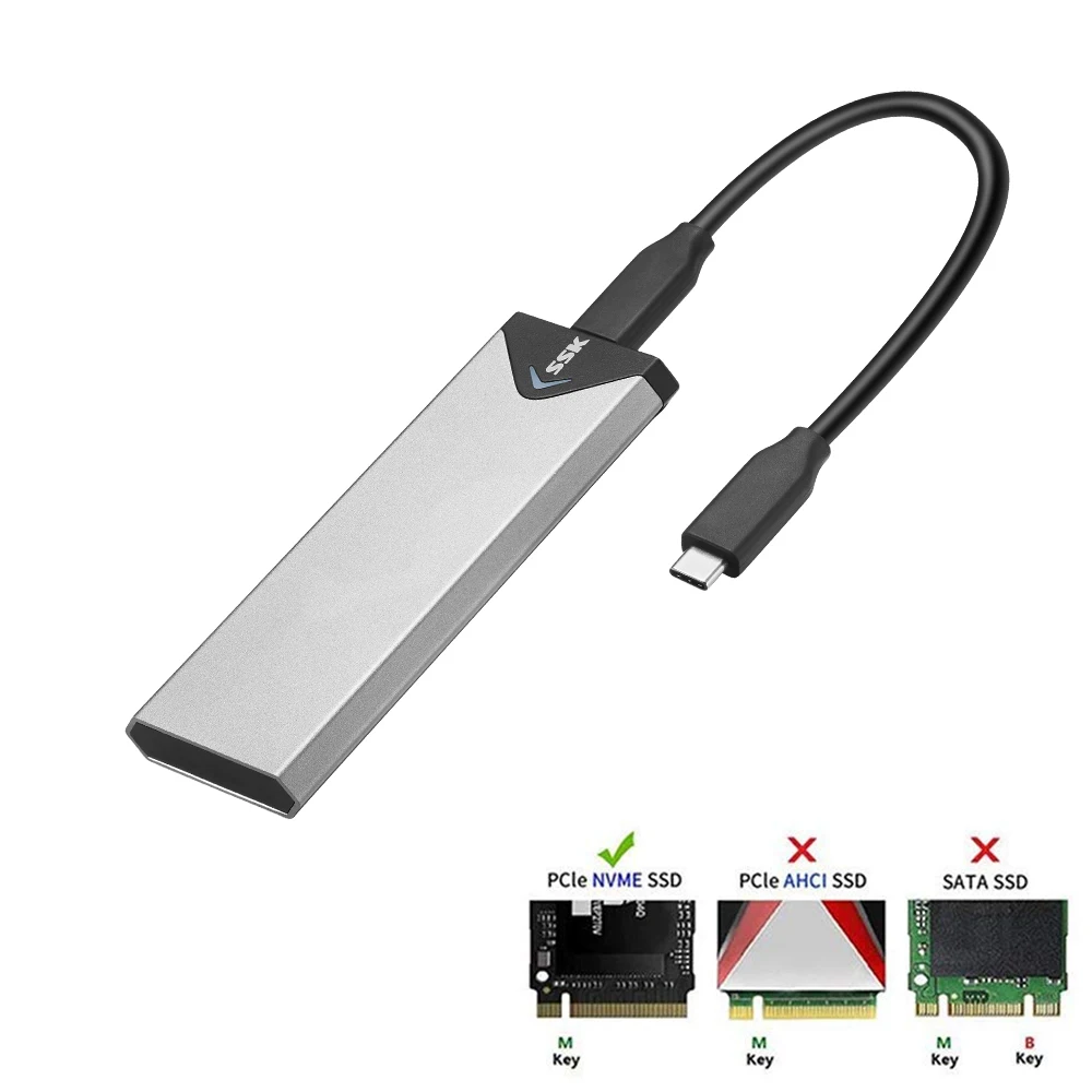 SSK алюминиевый сплав M.2 корпус SSD, HDD Type-C чехол для мобильного жесткого диска M.2(NGFF) SATA NVMe интерфейс SSD 224222602280 HDD Чехол