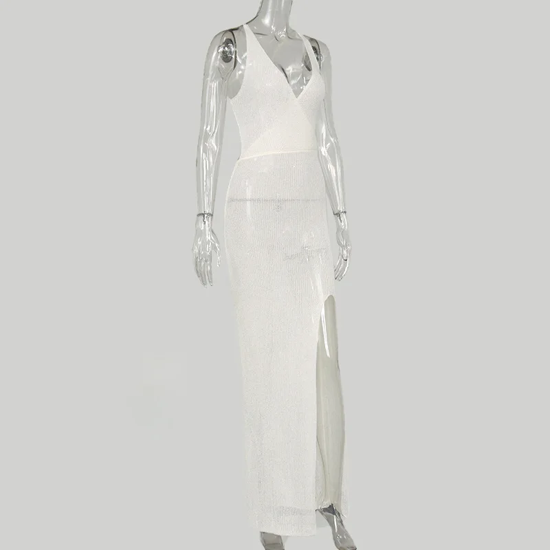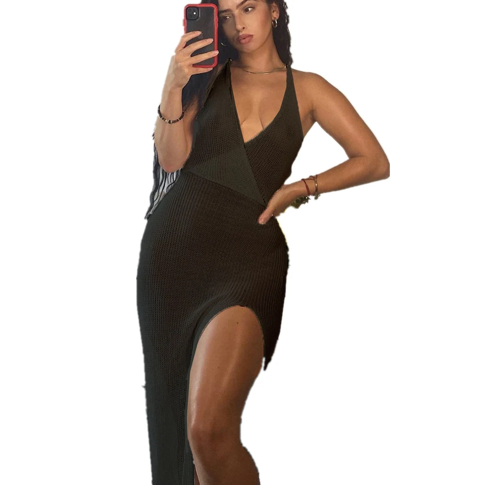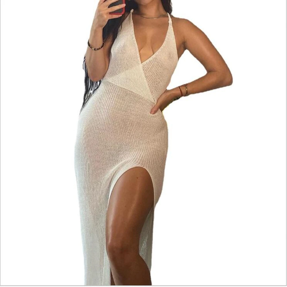 Женское трикотажное платье-свитер без рукавов, золотистое ажурное пляжное платье мини для ночного клуба, уличная одежда, осень 2019