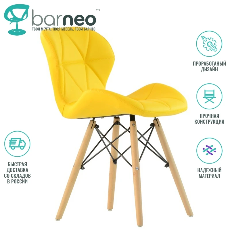 Дизайнерский стул Barneo N-42 95624 Perfecto желтый интерьерный кухонный обеденный сидение эко-кожа ножки бук