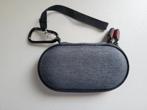 Чехол сделан качественно. Есть карабин и ремешок. Наушники располагаются удобно.