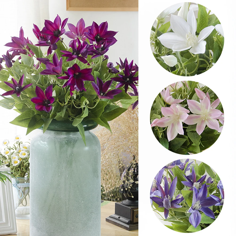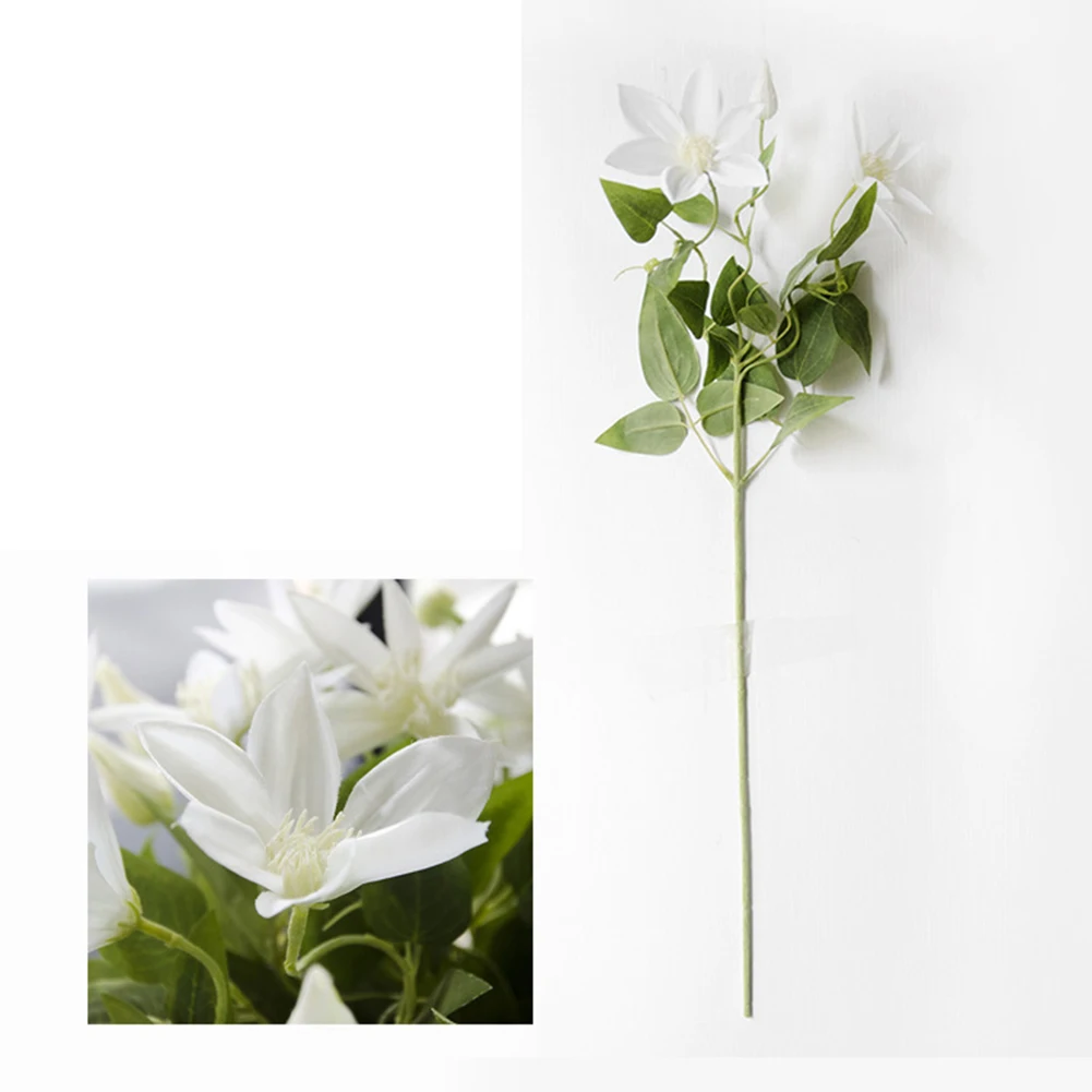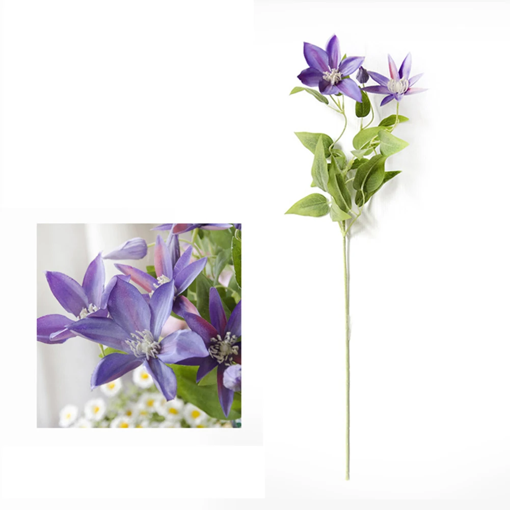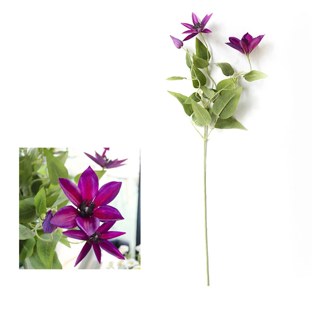 Элегантный Клематисы Искусственные цветы 3 вилки клематис в форме искусственных цветов, 69 см; Сатиновые туфли с цветочным узором свадебное оформление букета дома вечерние цветок