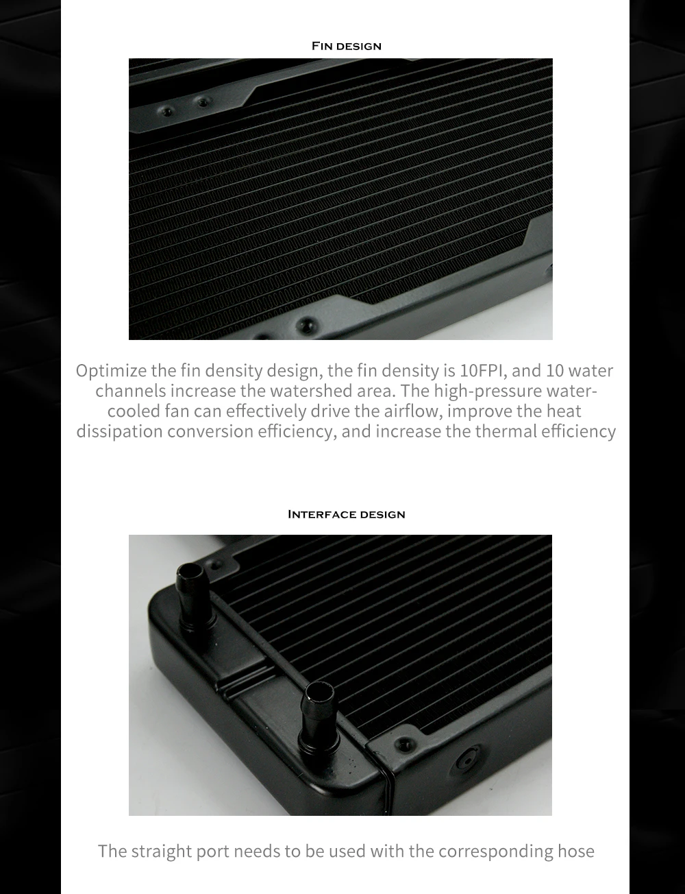 Радиатор водяного охлаждения для ЦП, GPU теплоотвод ОЗУ, алюминиевый, G14 дюйма, 608090120240360 мм, черныйбелый