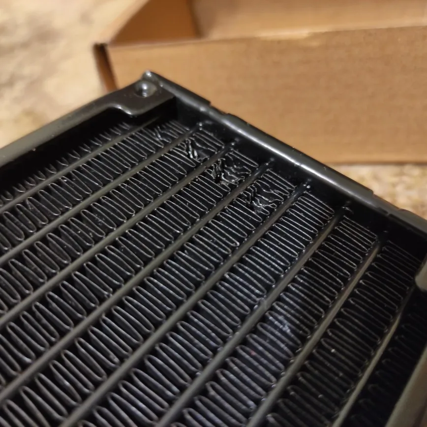 Отлично! Упаковка радиатора очень хорошая- картонная коробка и радиатор доехал в целом, целый. Только в нескольких местах на оребрении есть дефекты, но думаю это не критично, подровняю пинцетом и на продув вентилятором это не повлияет. Сначала подумал, что это шляпки винтов крепежа, которые в комплекте в пакетике по коробке болтались сделали, но потом увидел что это производственный дефект- краска лежит уже поверх повреждений.