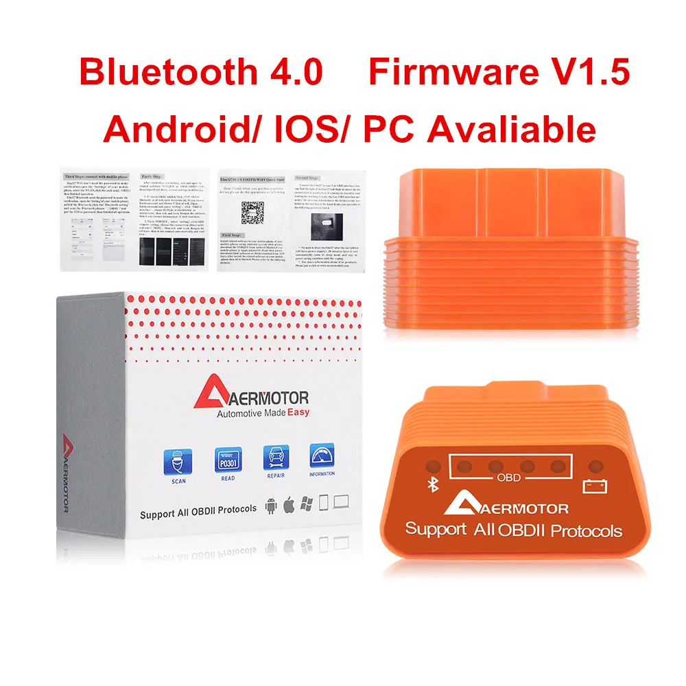 Оранжевый Aermotor ELM327 Bluetooth 4,0 + аппаратное обеспечение V1.5 + IOS/Android/Windows в наличии + картонная коробка