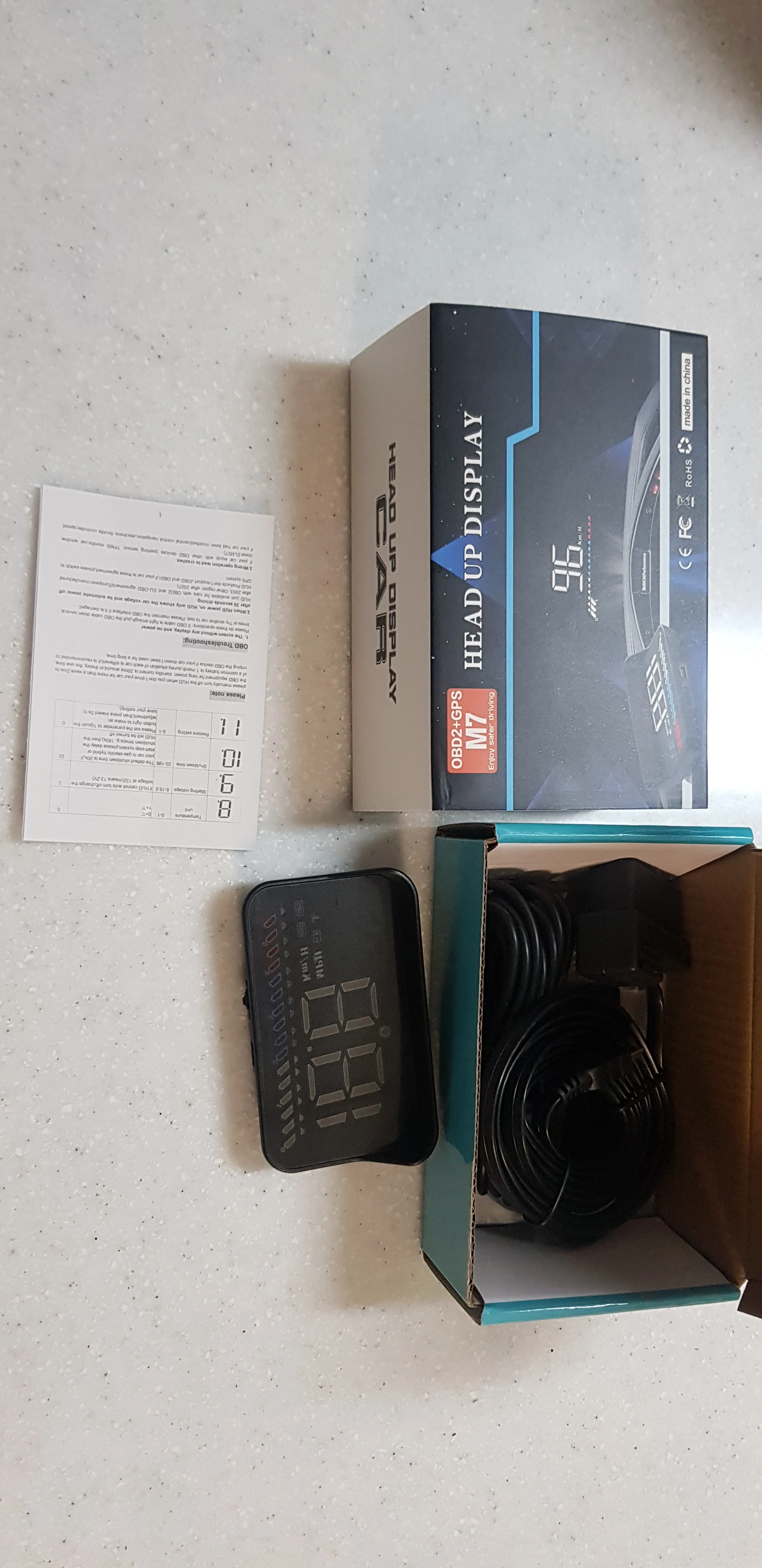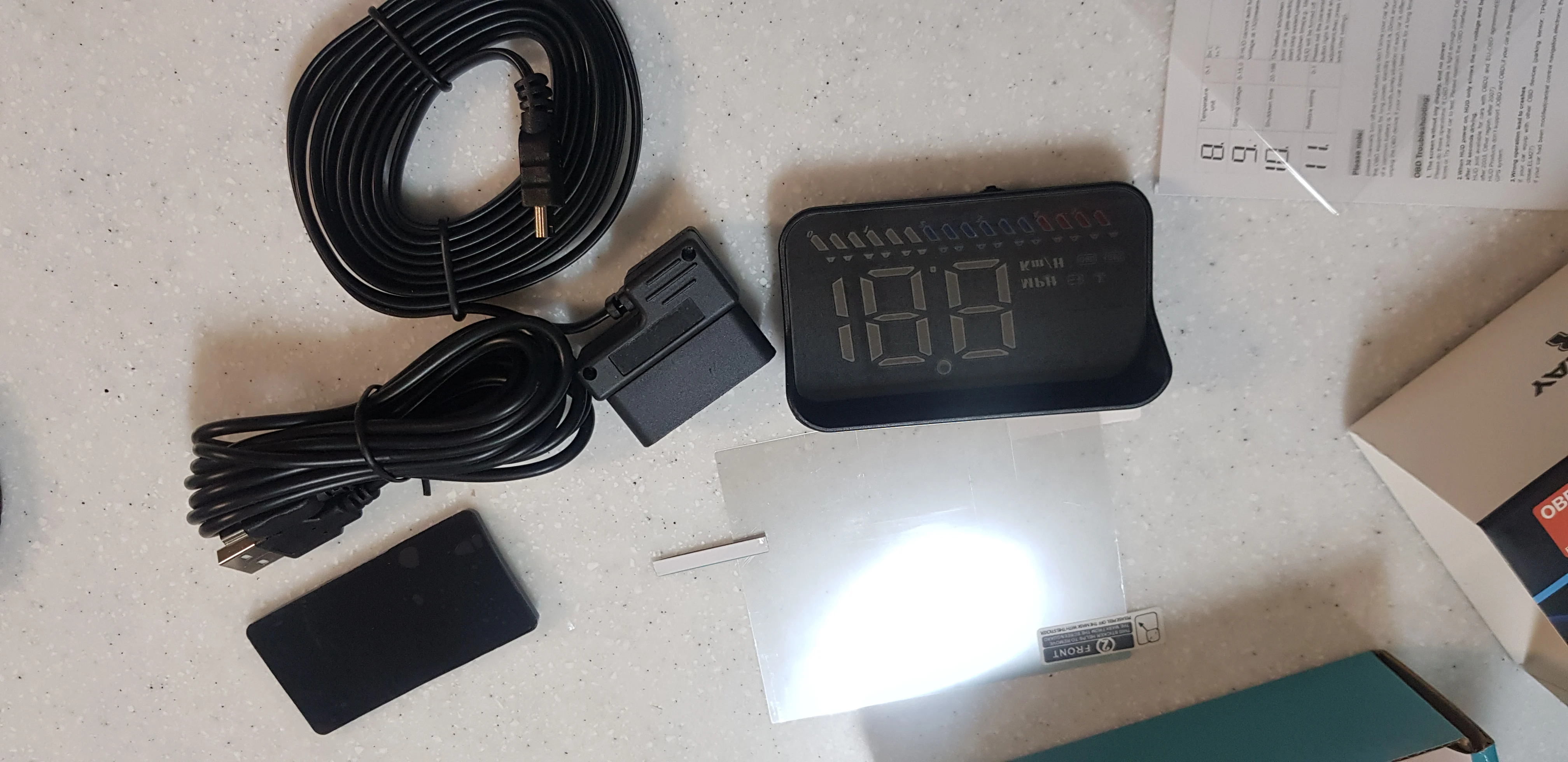 Товар пришёл в картонной упаковке. Всё целое, без повреждений. Подключил, положил под лобовое стекло на комплектный коврик, подключил к OBD2 и вуаля - всё работает и даже зеркальная плёнка не понадобилась. Рекомендую товар и продавца.