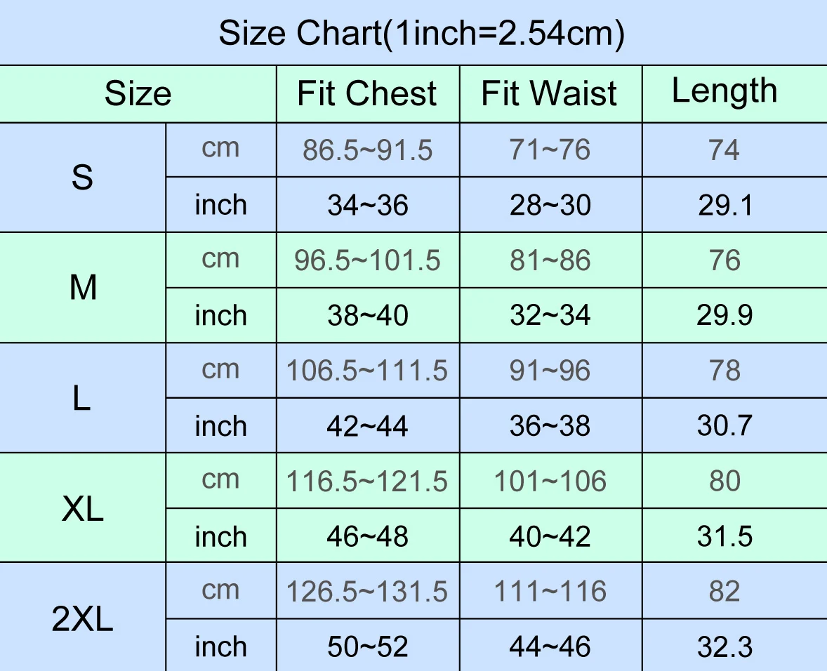 Размер 2XL: подходит для груди 126,5-131,5 см/50-52 дюйма, подходит для талии 111-116 см/44-46 дюйма, длина 82 см/32,3 дюйма;