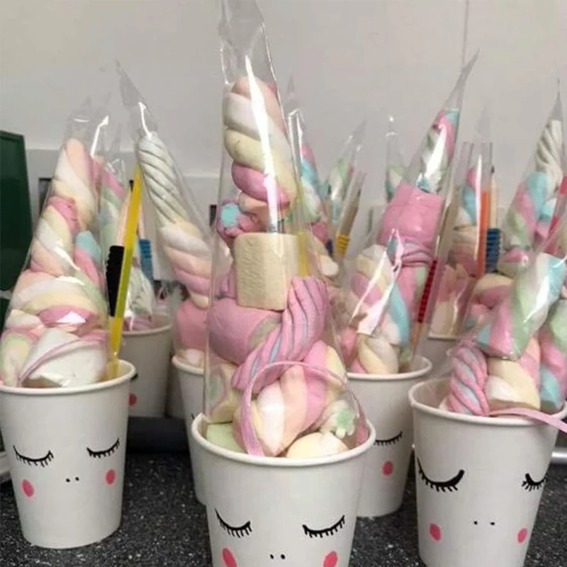 Пластиковая подарочная сумка для печенья, бумажная коробка для попкорна в виде единорога, разноцветная Подарочная коробка для торта, топпер для детского праздника, дня рождения, 50 шт.