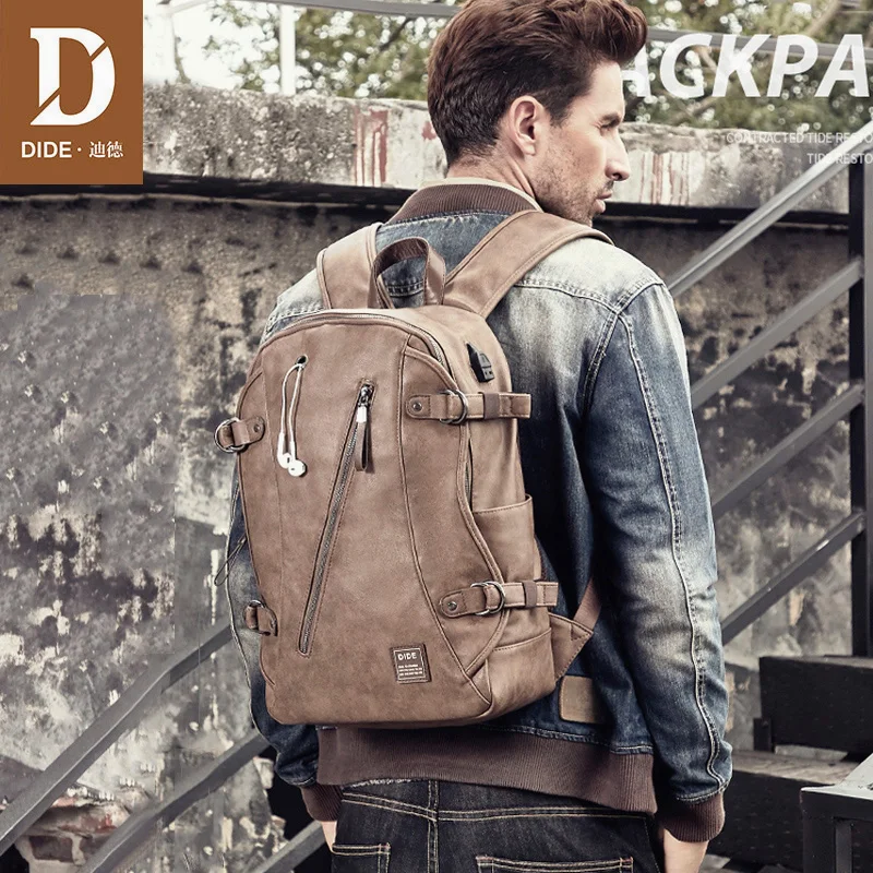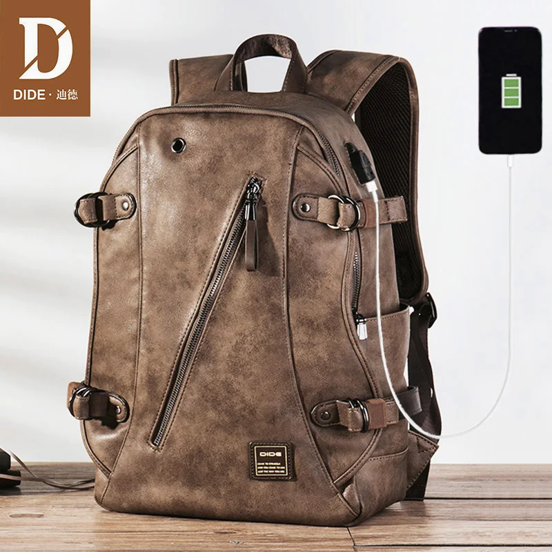 Мужской кожаный рюкзак DIDE, водонепроницаемый дорожный рюкзак с USB-разъемом для ноутбука, винтажный школьный ранец для подростков, 2021 icon star icon star icon star icon star icon star