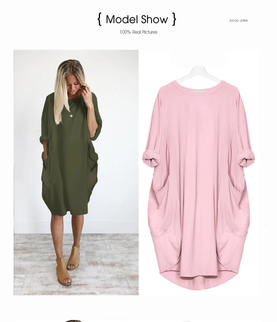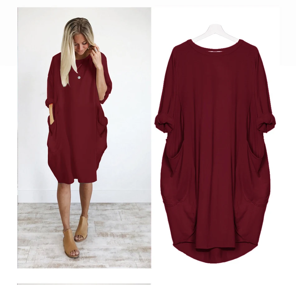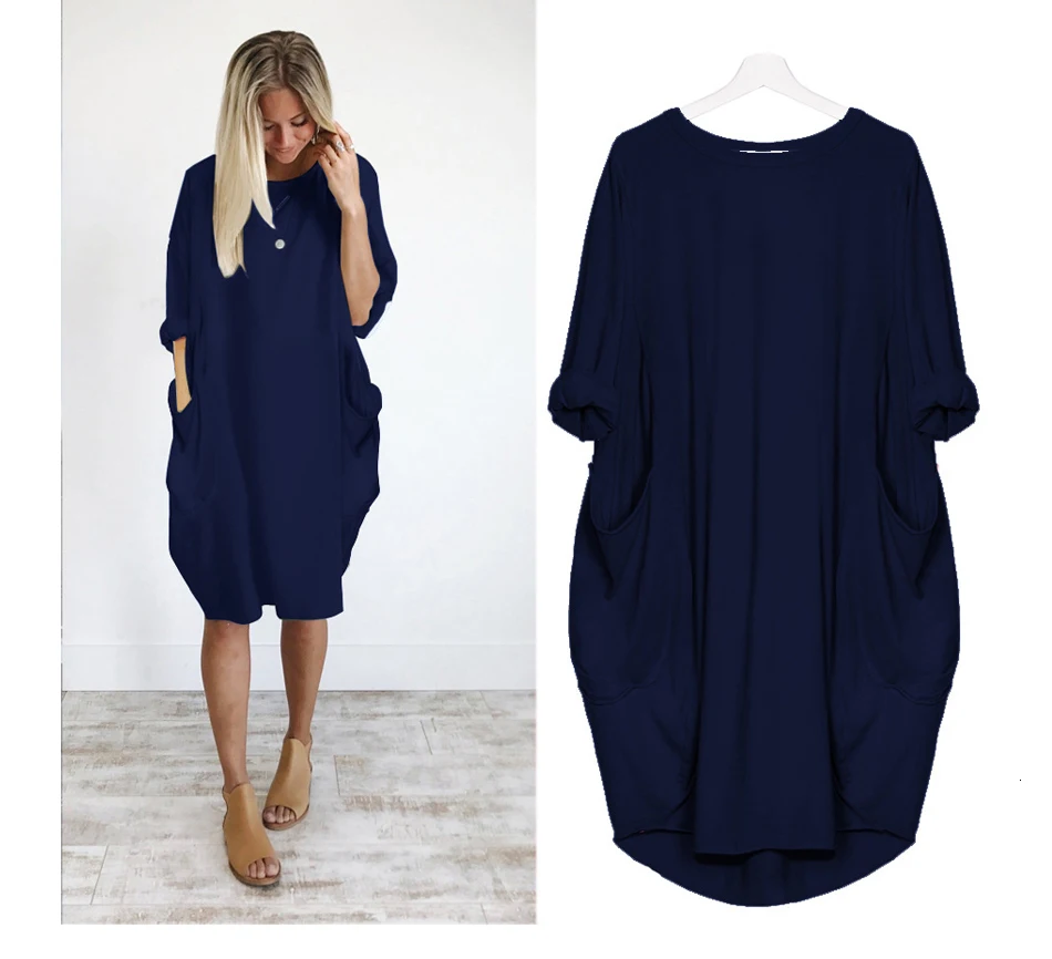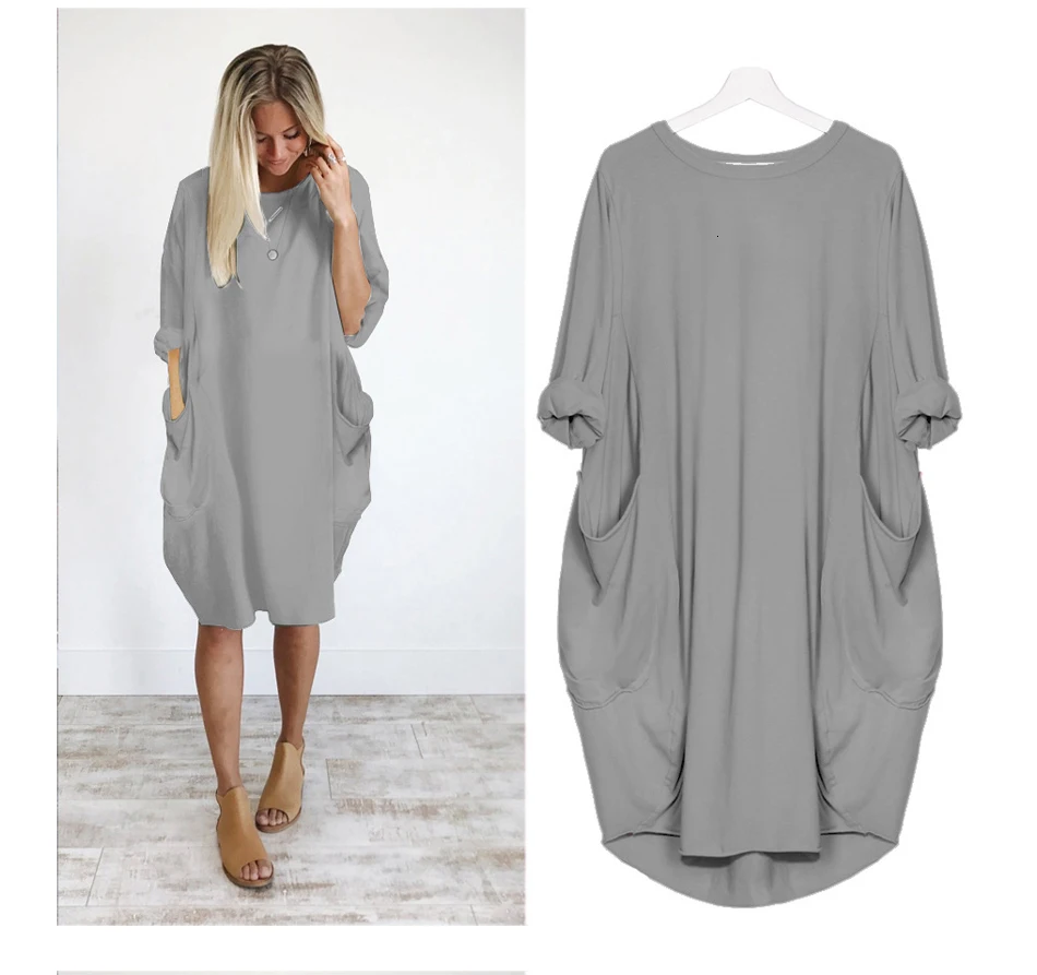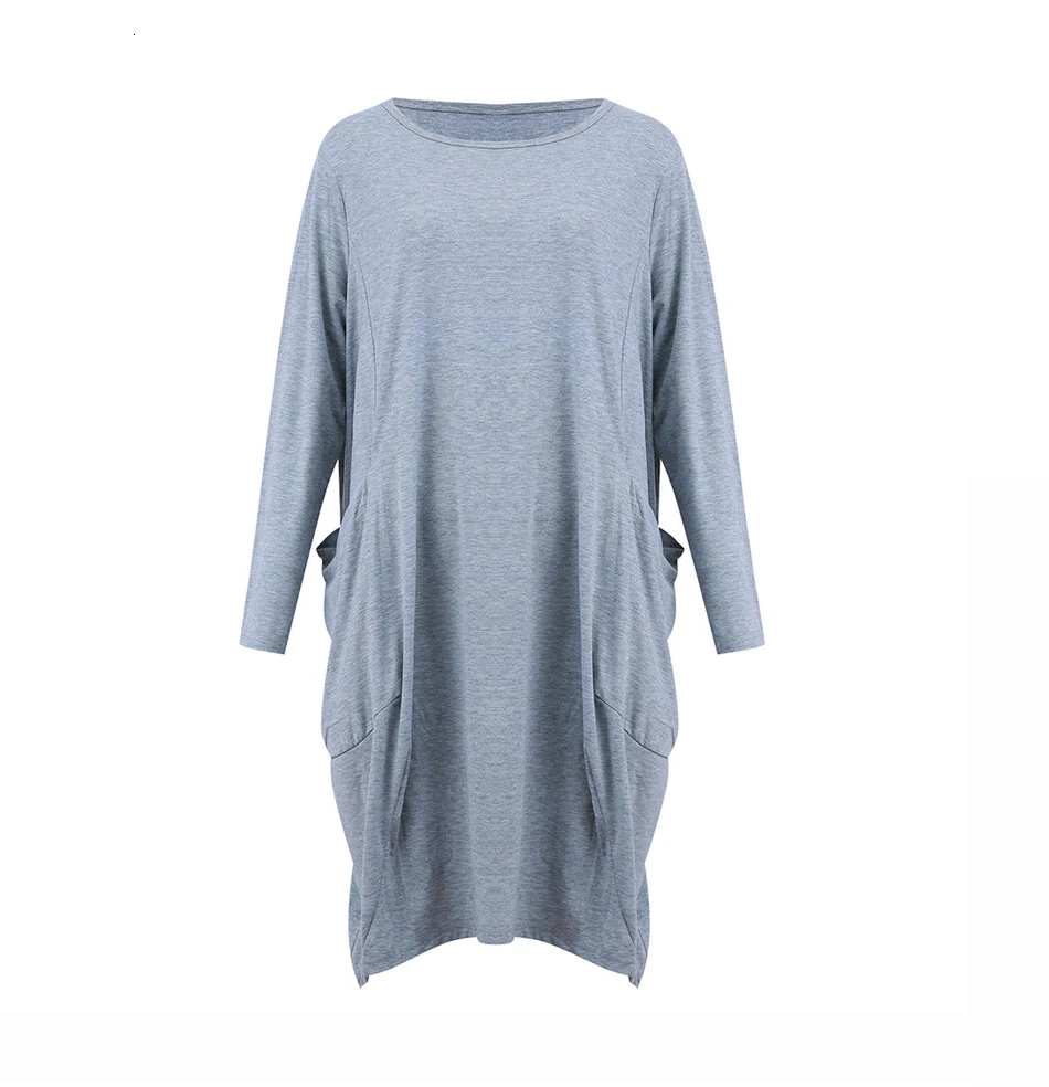 Женское повседневное свободное платье с карманами, длинные топы с круглым вырезом, уличная одежда большого размера