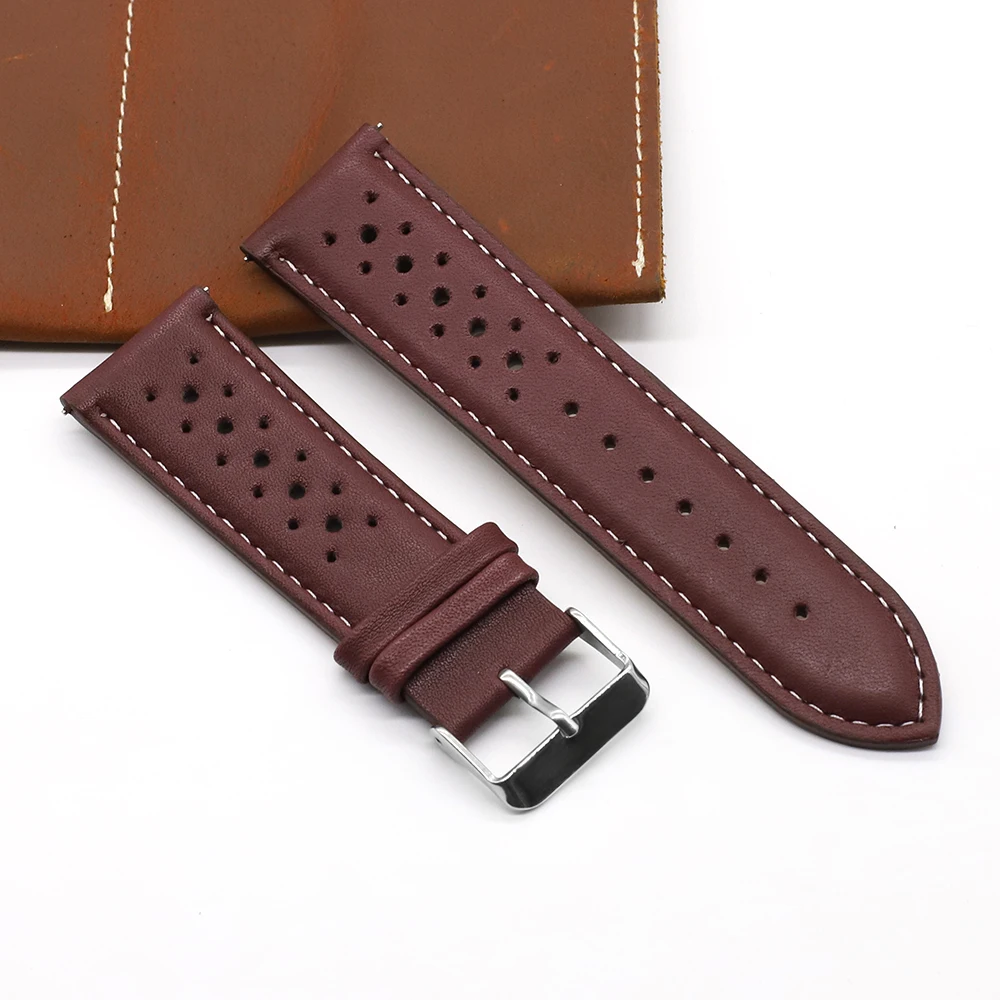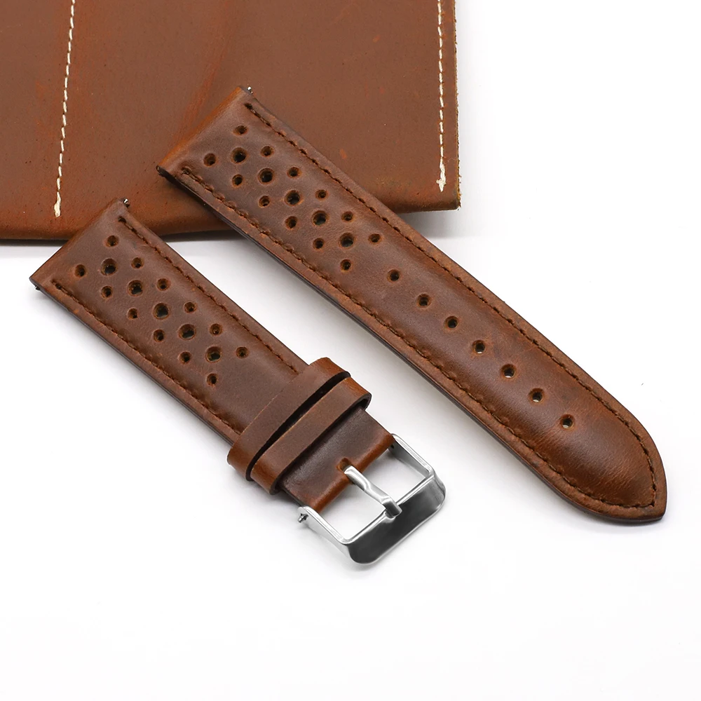 Onthelevel 18 мм 19 мм 20 мм 22 мм 24 мм кожаный ремешок для часов пористый дышащий Ретро ремешок для часов красный черный браслет ручной работы # D