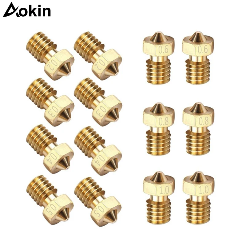 10 шт., Форсунка для экструдера 3D-принтера M6 для V5 V6 0,20,30,40,50,680,81,0 мм, латунная форсунка, Печатная головка для 3D-принтера, детали