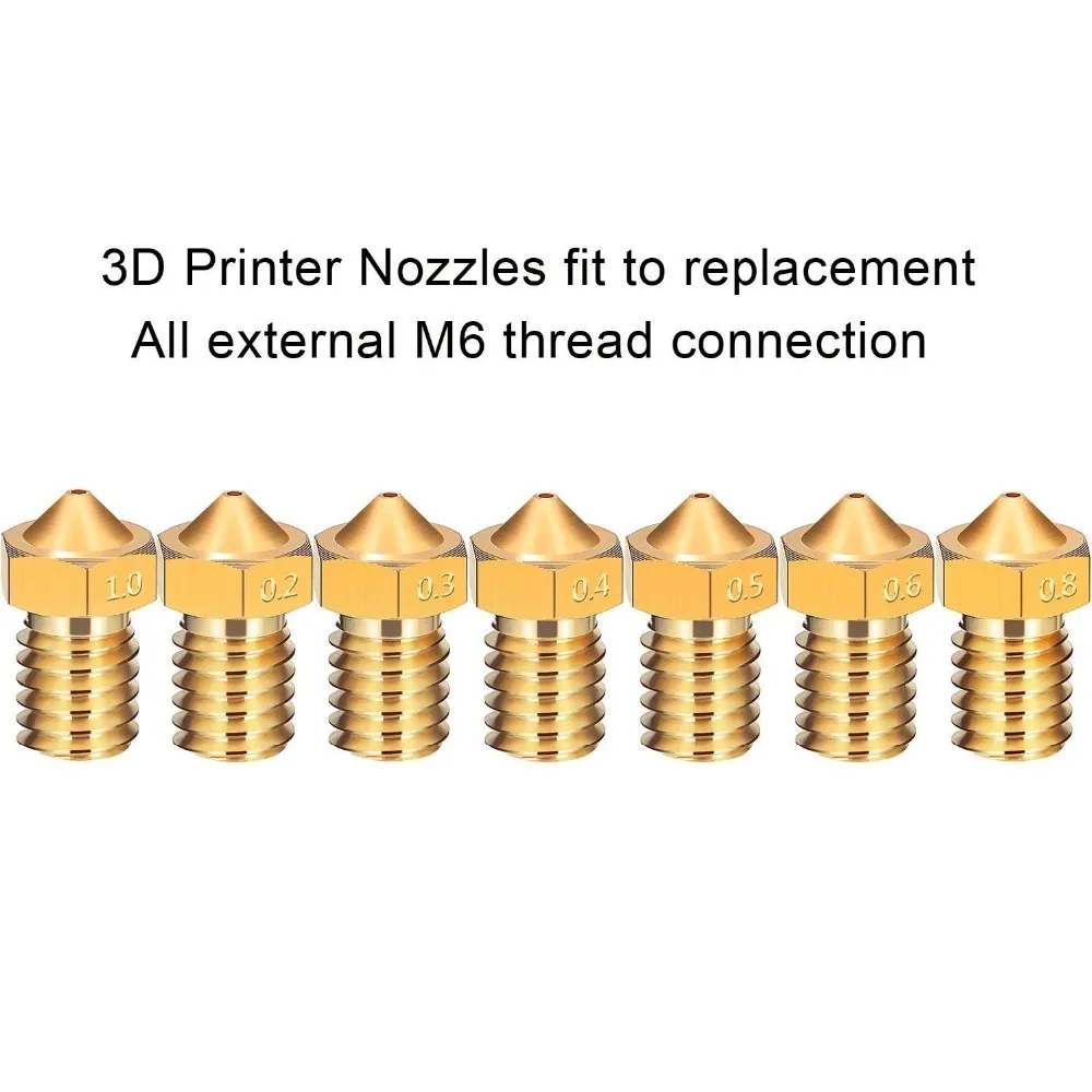 10 шт 3D принтер экструдер сопло M6 для V5 V6 0,2/0,3/0,4/0,5/0,68/0,8/1,0 мм латунная насадка Печатающая головка для деталей 3D принтера