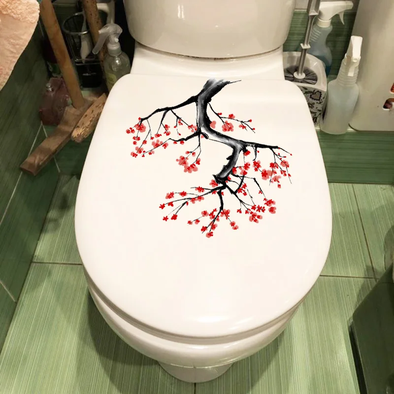 ZTTZDY 20,4*19,7 см, чернила, слива, цветок, домашние комнаты, настенные Стикеры, классический декор наклейки для унитаза, T2-0231