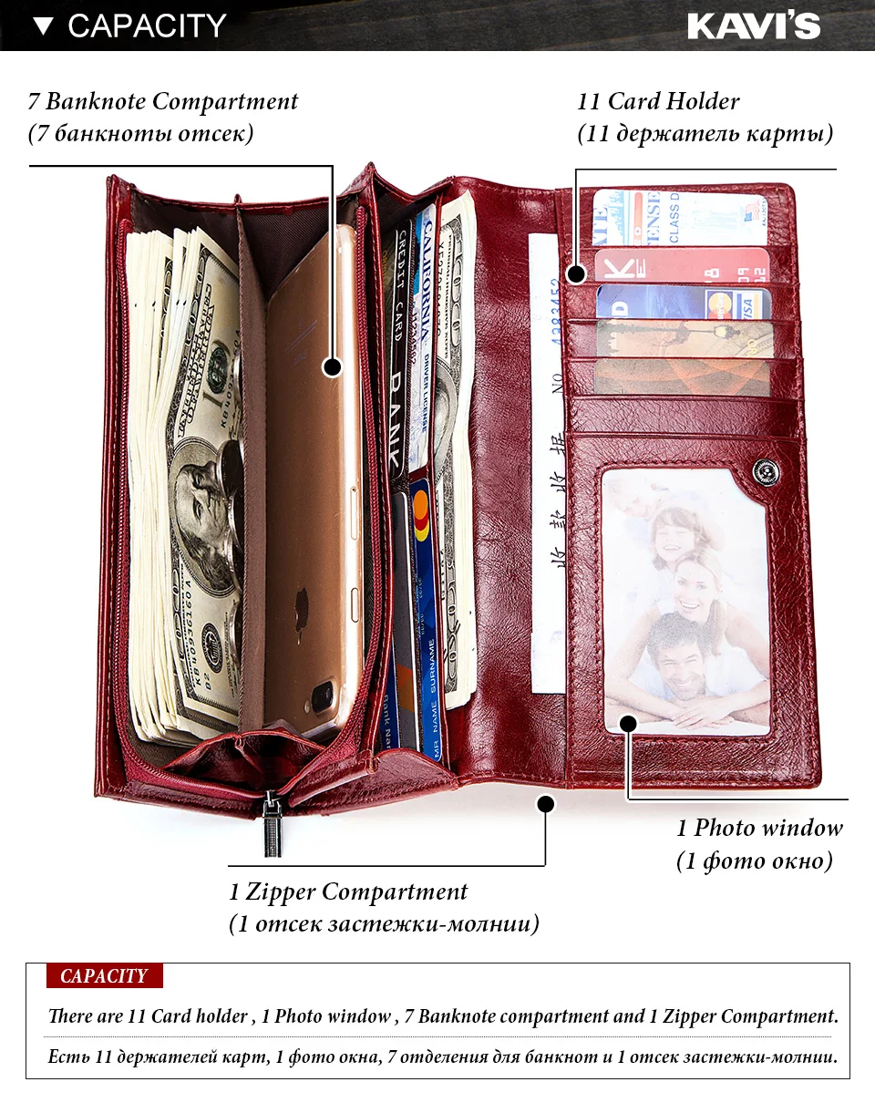 Заказ приехал быстро. ночью заказала, наутро отослали. Подумала, что надписи не будет, а она есть. Получала на кассе в пятерочке первый раз. назвала фамилию и код из СМС. Упаковано в пупырку, мешочек и чехол. Образец кожи внутри, края прошиты, замки рабочие, кнопка пока туговата. Купюры входят с запасом по длине и ширине. Карты и визитки тоже. Спасибо продавцу. Молодец!