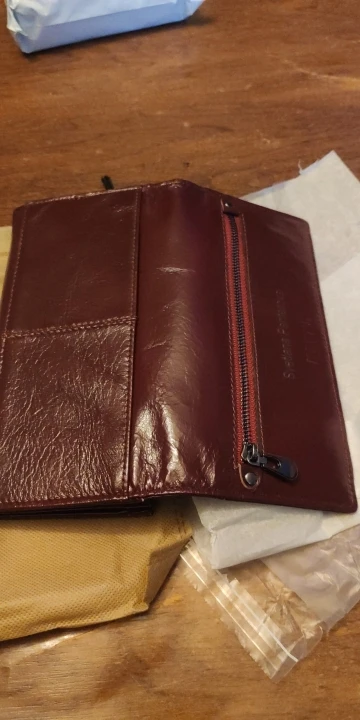 получила кошелек,признаюсь 0жидания немного не оправдались,хлипенький он какой то. Запах краски присутствует. Посмотрим сколько прослужит.