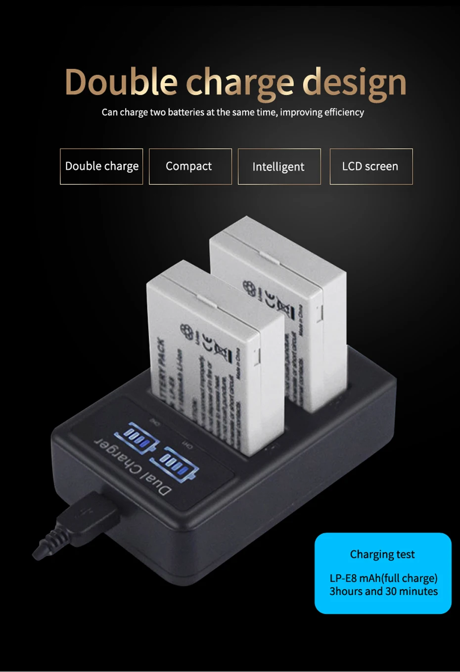 PALO LP-E8 LPE8 LP E8 ЖК-дисплей USB камера зарядное устройство для...