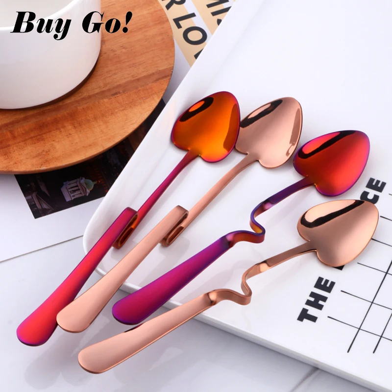 Креативные кофейные Десертные Ложки для сахара в форме сердца из нержавеющей стали, подвесная чашка для мороженого, чайная ложка для питья, кухонные принадлежности