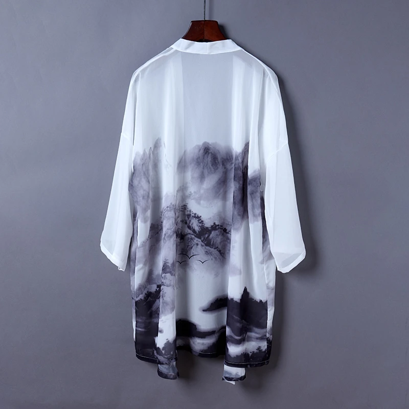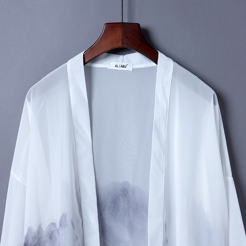 #5306 летняя пикантная прозрачная шифоновая блузка, женская Свободная блузка в японском стиле, винтажное кимоно с принтом, женский длинный кардиган в стиле Харадзюку