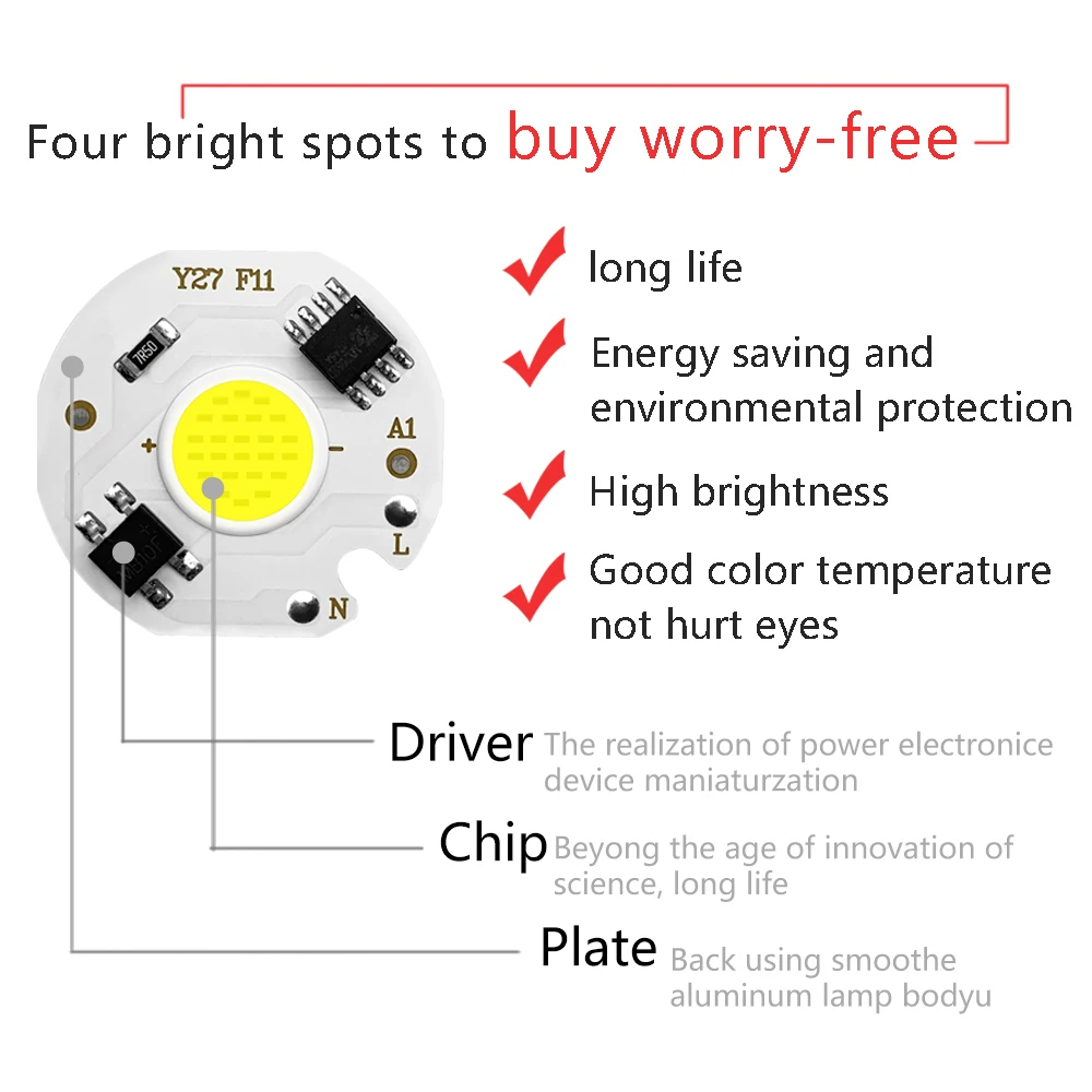 Оставьте отзыв по этому заказу Светодиодный чип COB для лампы, 5 шт., 220 В, 240 в, IP65, умный IC, без драйвера, светодиодный прожектор, точечный светильник 3 Вт, 5 Вт, 7 Вт, 10 Вт, 12 Вт, Diy светильник ing