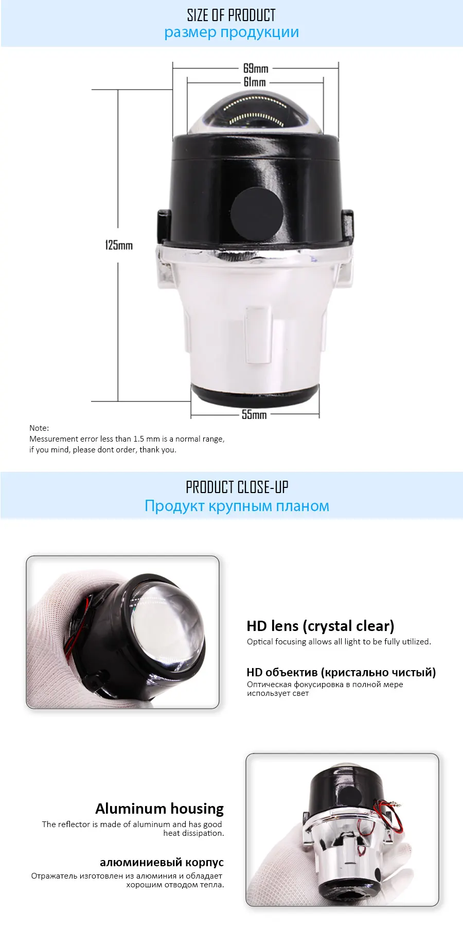 1. Посылка не включает ксеноновый комплект HID, покупателю необходимо купить ксеноновый комплект HID самостоятельно. 35 Вт/55 Вт будет в порядке.2. Прежде чем подтвердить заказ, пожалуйста, сравните диаметр противотуманной фары вашего автомобиля и диаметр нашего объектива. Если не то же самое, вам нужно выбрать другой объектив большего размера или объектив меньшего размера, свяжитесь с продавцом, мы отправим вам ссылку.