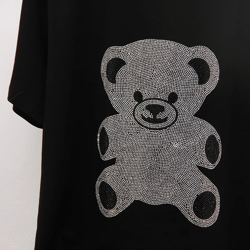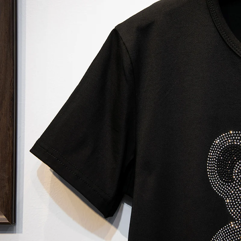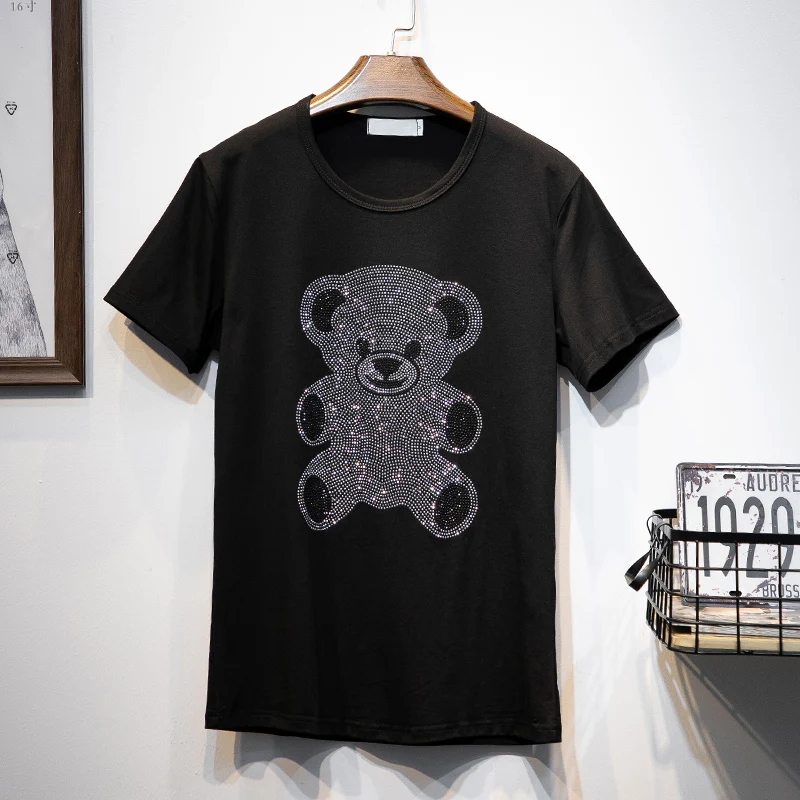 Лето 2021 г. новая корейская футболка с короткими рукавами женская свободная мода с бриллиантами хлопок черные женские топы Нижняя рубашка