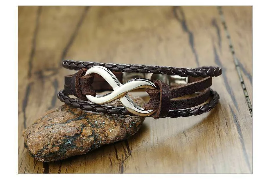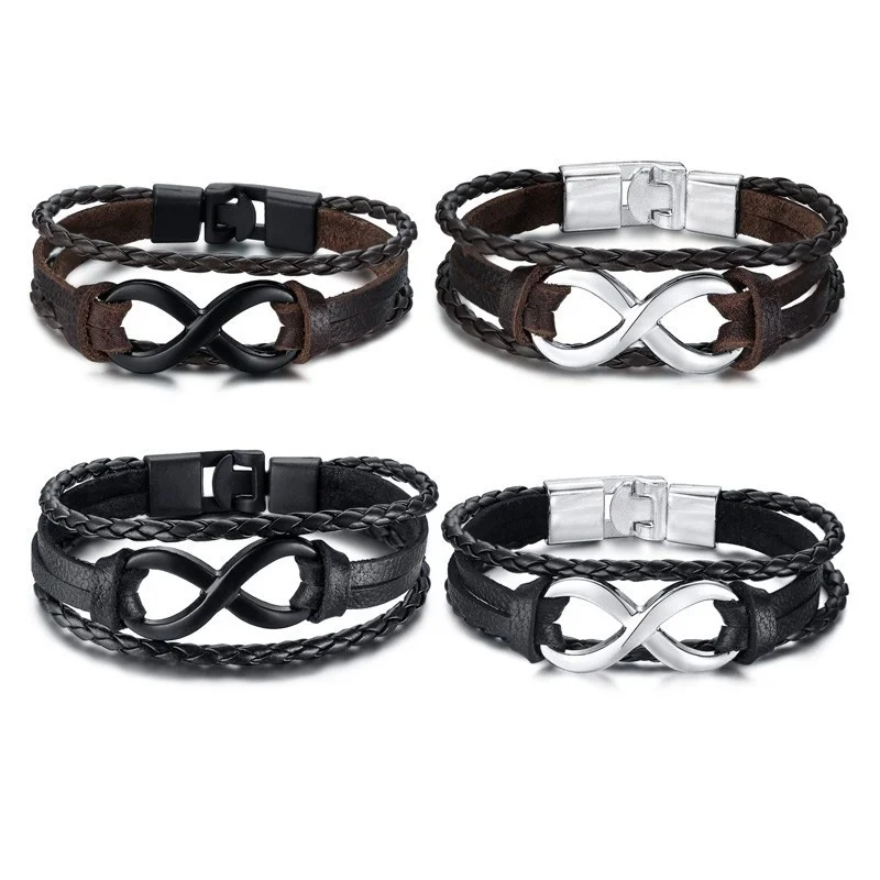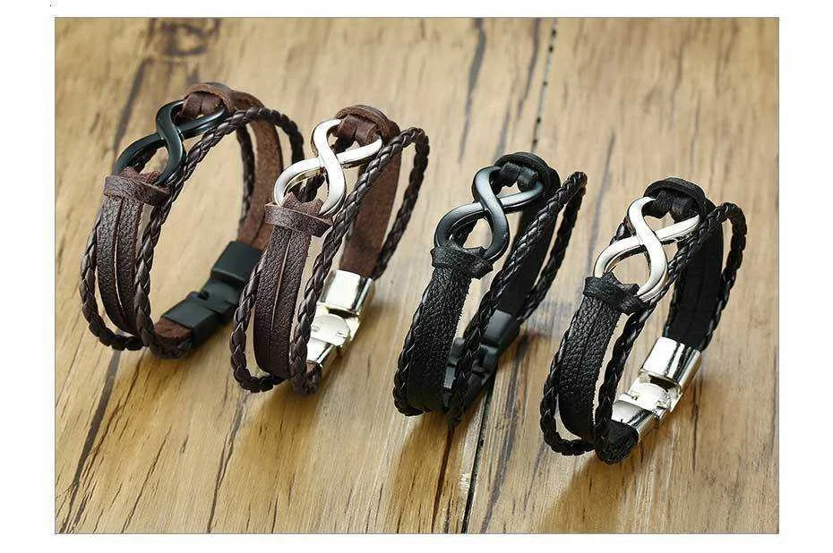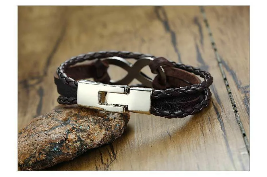 Vnox Винтаж 8: бесконечное очарование кожаный браслет для мужчин, который надевается на лучезапястный сустав обертка плетеные веревки манжеты браслет pulseira