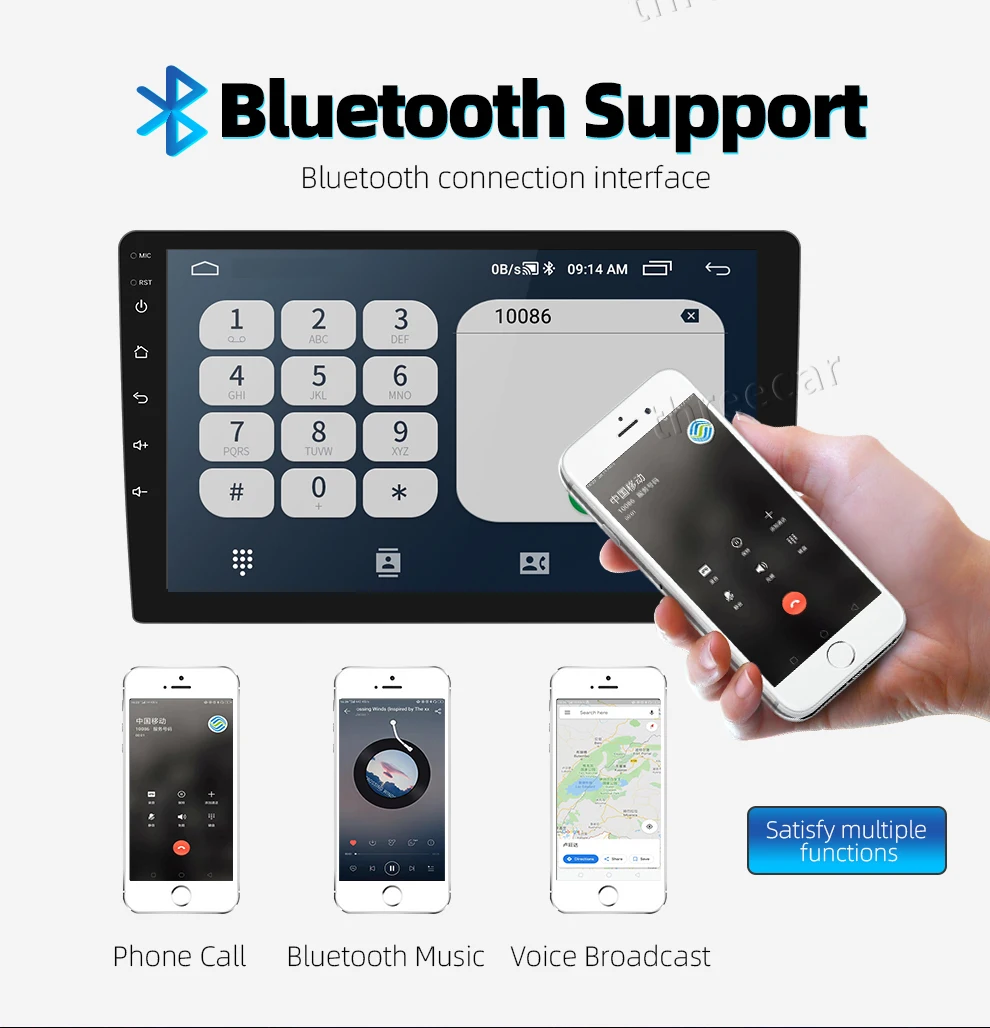 4. Функция Bluetooth, поддержка телефонных звонков, музыки, голоса по Bluetooth, подключение вашего смартфона с помощью функции Bluetooth, вы можете совершать и принимать звонки прямо с самого автомобильного DVD-диска со встроенным микрофоном и динамиком. Освободите руки для безопасного вождения.