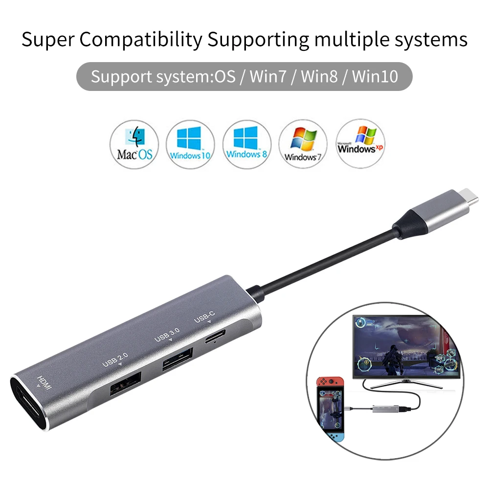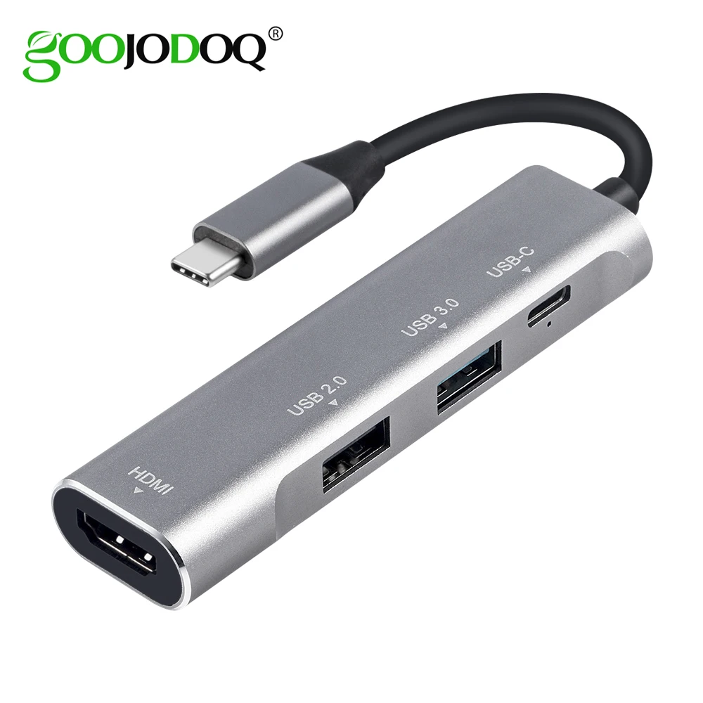 Адаптер Goojodoq USB Type-C 4 в 1 с 2 USB-портами, HDMI 4K и разъемом Type-C, 5 В