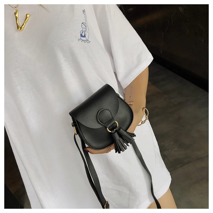 Новая женская сумка с одним плечевым карманом, кошелек с наклонными кисточками, модная однотонная сумка из искусственной кожи, сумки для детей, кошелек для девочек