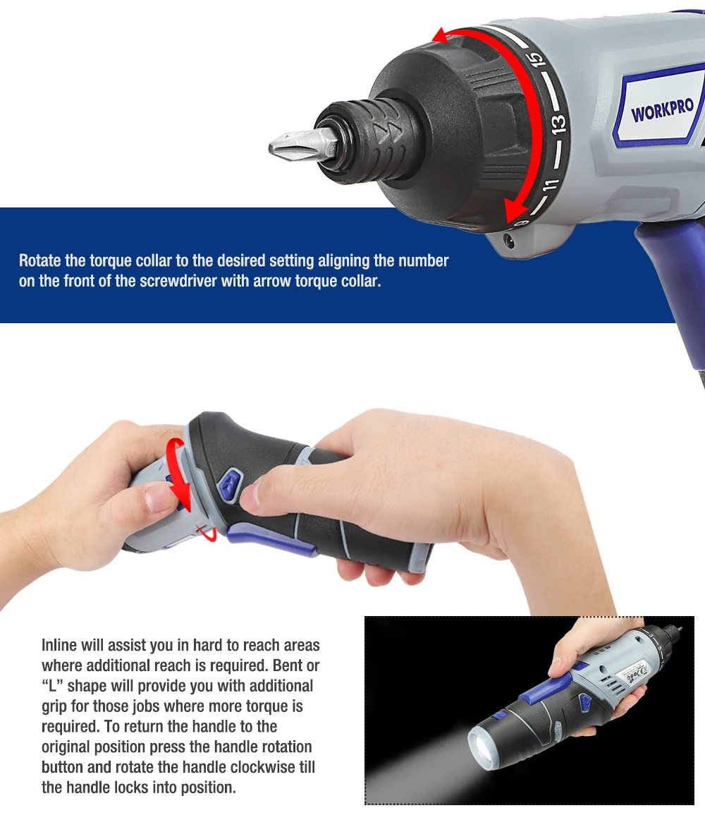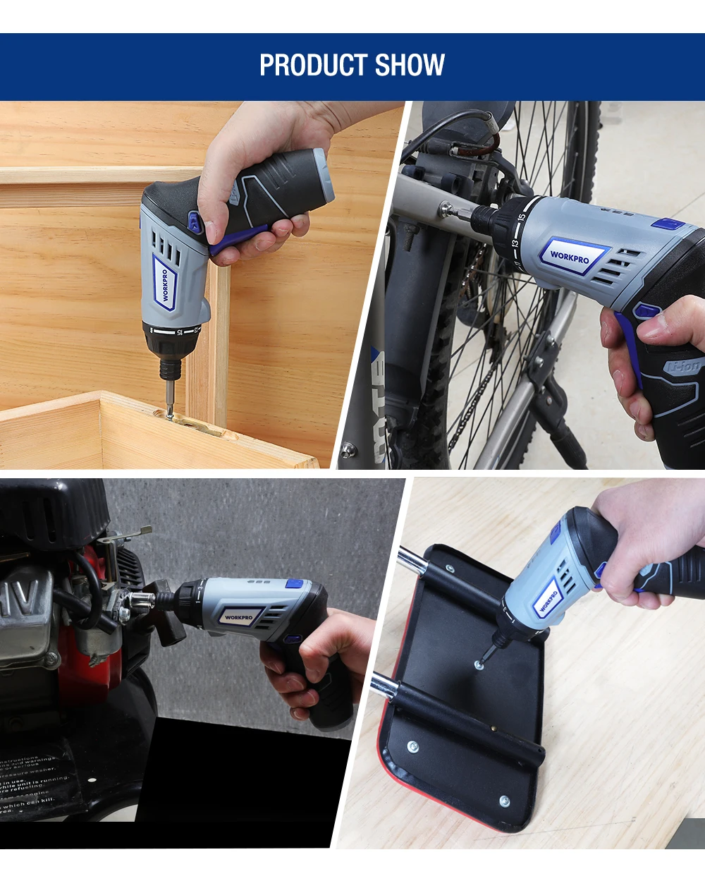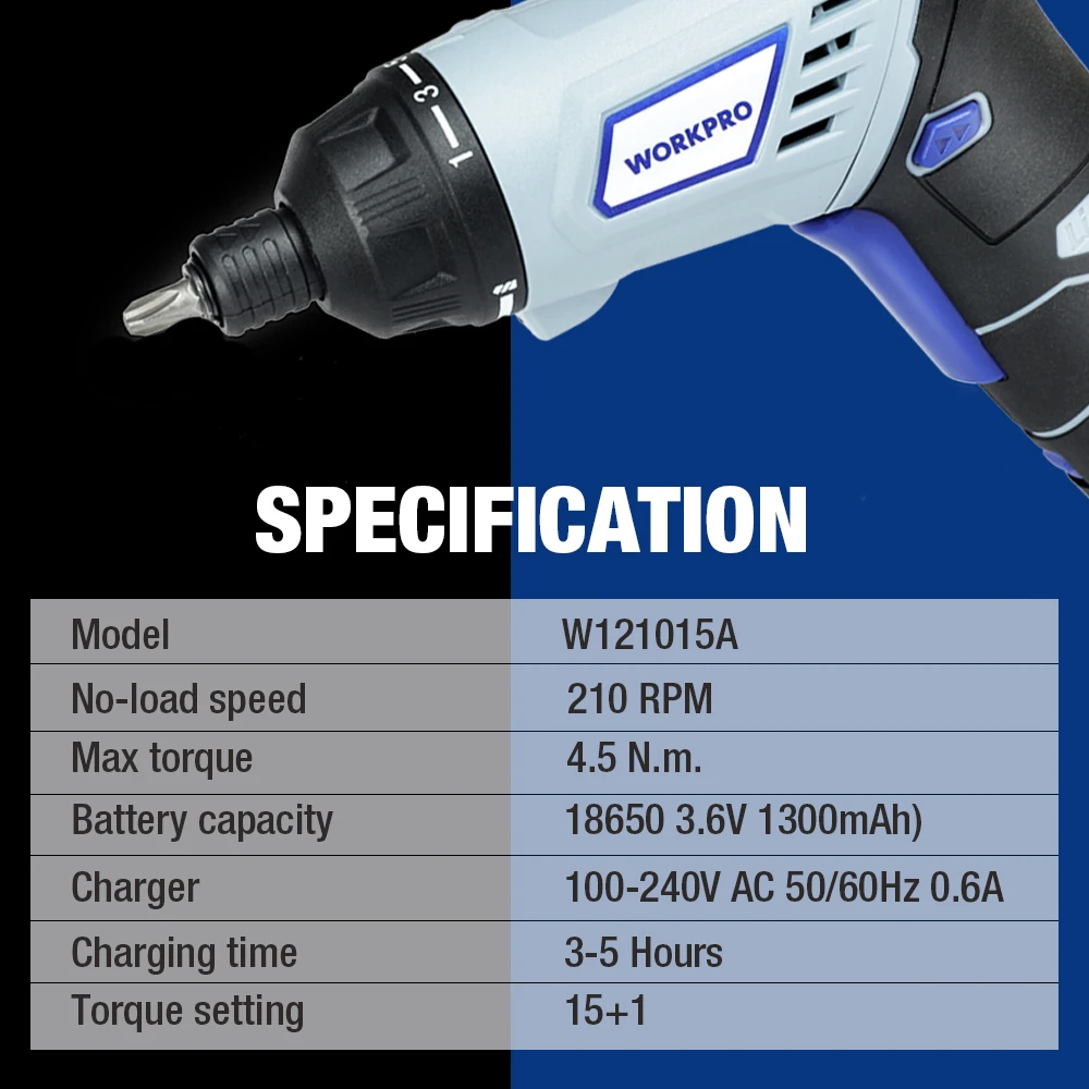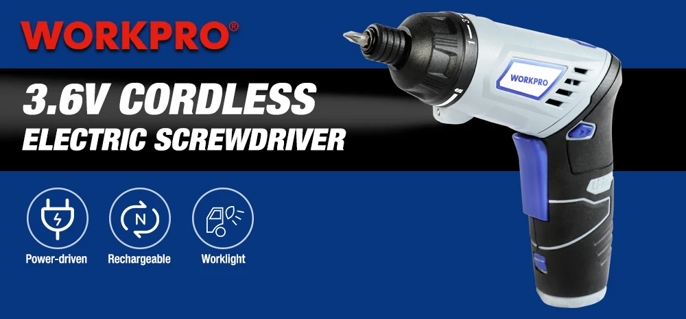 Шуруповерт WORKPRO Аккумуляторный с литиевым аккумулятором, 3,6 В