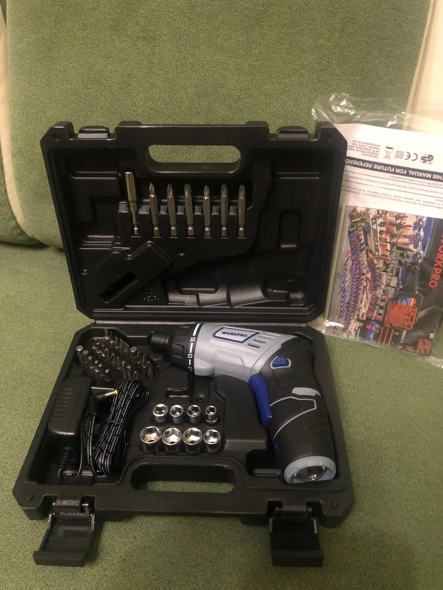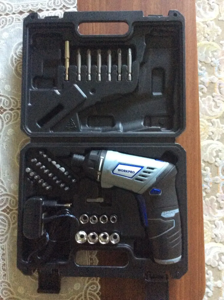 Отличный шуруповёрт для дома, достаточно мощный для своих размеров, саморезы вкручивает хорошо, сделан достаточно качественно, большое количество насадок, поставляется в удобном кейсе для хранения и переноски. Своих денег однозначно стоит. Доставка заняла 3 месяца, так как, через 2 недели посылку вернули обратно и продавец переслал другой службой. Продавец оказался очень отзывчивым и честным. В общем товар и продавца рекомендую.