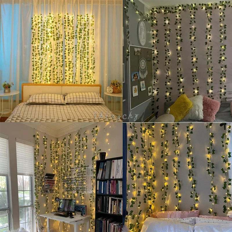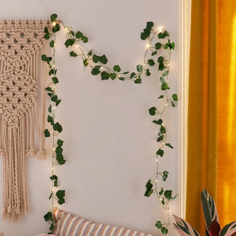 Гирлянда из листьев плюща гирлянда 2 м, листья плюща, гирлянда, гирлянда, свадебное украшение для дома, мини светодиодные медные Огни