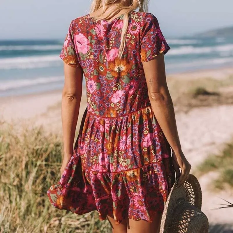 Женское винтажное платье с цветочным принтом, Пляжное богемное Плис...