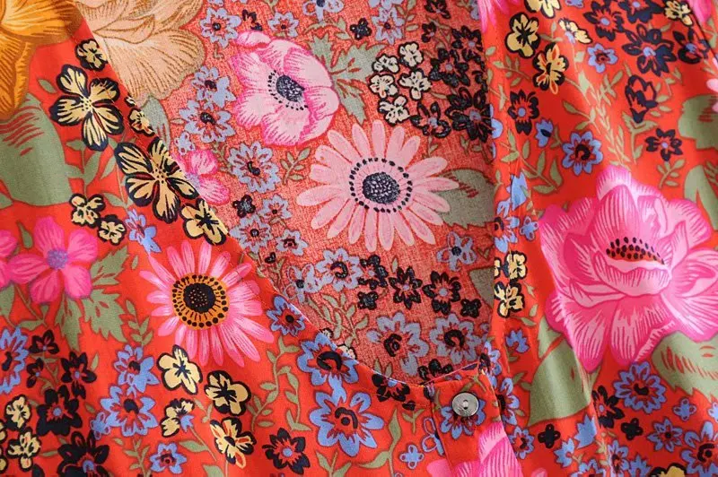 Винтажная шикарная Женская богемная блузка с цветочным принтом, V-о...