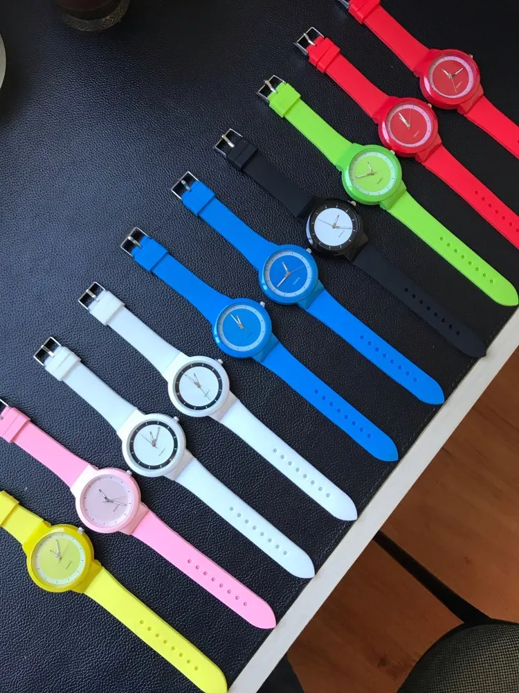 Прикольные часы, очень приятные на ощупь и на руке хорошо лежат. Мягкий силиконовый ремешок. Корпус, скорее всего металлический, но смотрится как керамический. Выглядят дорого. Цвет как на картинке. Буду с удовольствием носить летом. Довольна