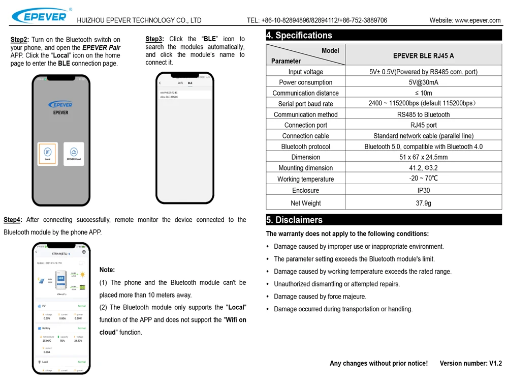 EPever адаптер BLE RJ45 A Bluetooth-совместим с трассировщиком BN TRIRON серии XTRA MPPT контроллер Инвертор серии SHI