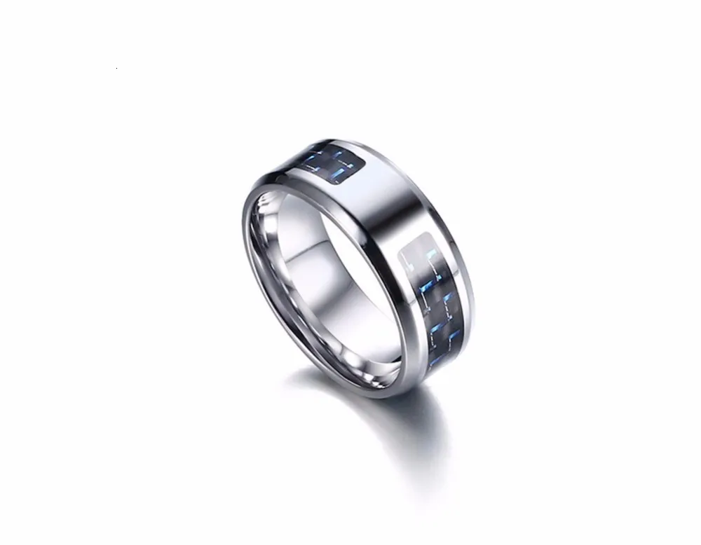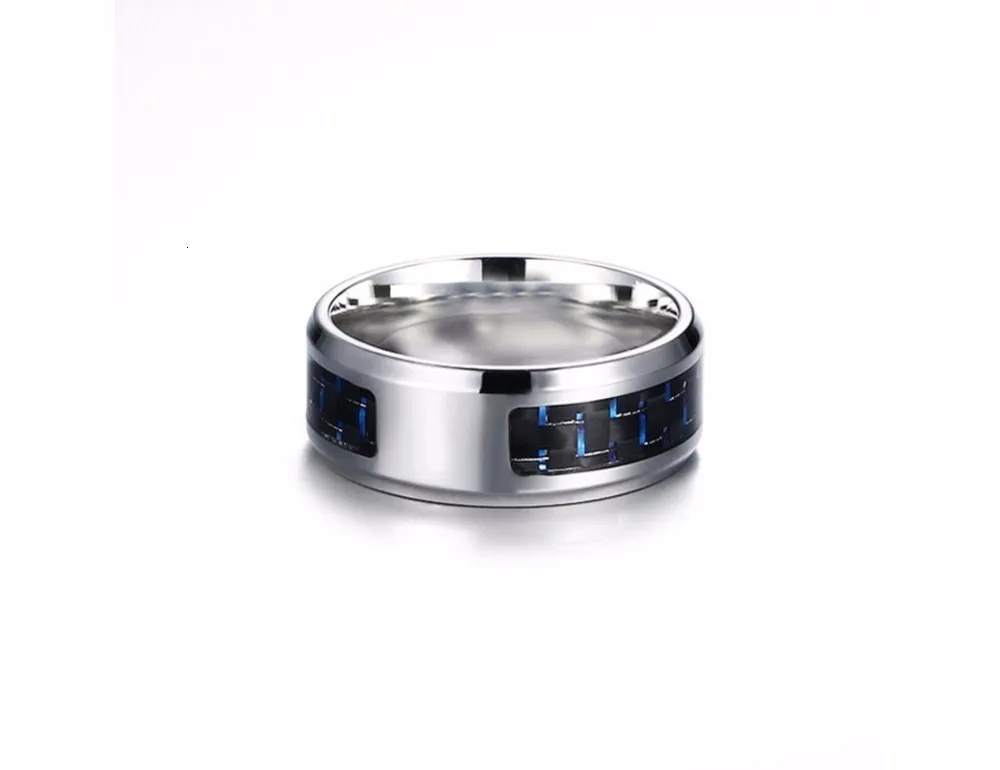 Мужское кольцо с лазерной гравировкой Wolf, обручальное кольцо из нержавеющей стали с голубым углеродным волокном 8 мм