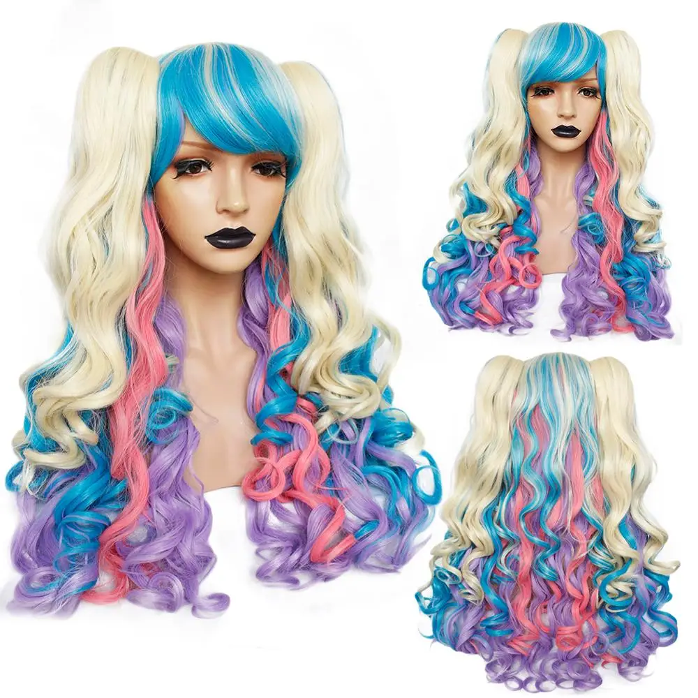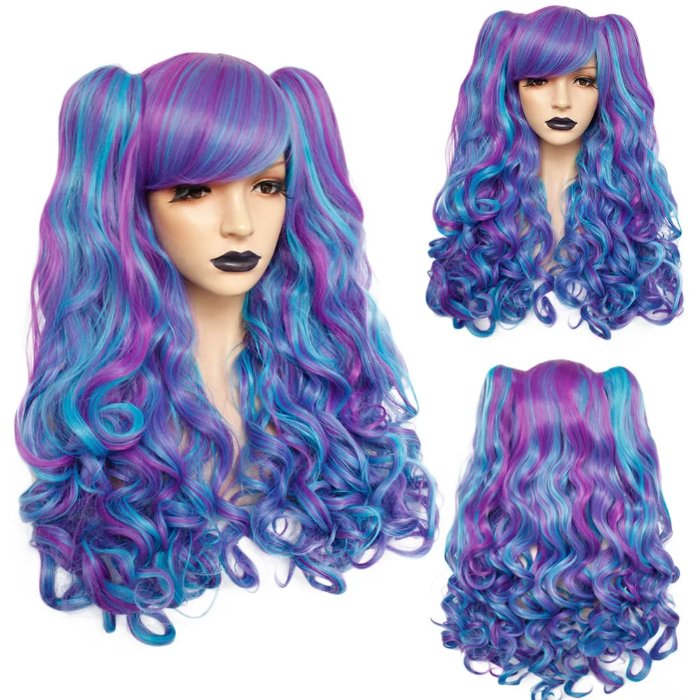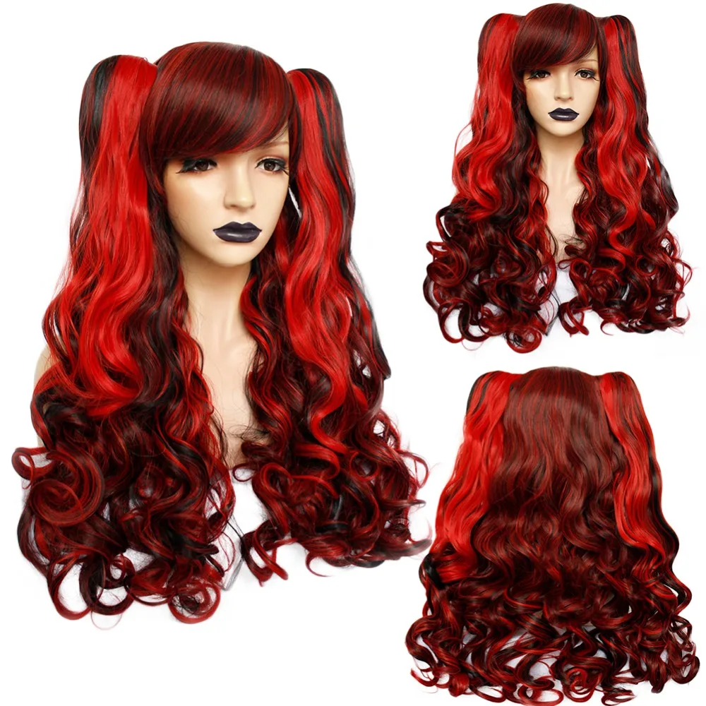 Аногол длинные волнистые Лолита Высокая температура волокна коричневый розовый красный черный блонд многоцветные синтетические Косплей парики 2 конские хвостыБренд: Anogol