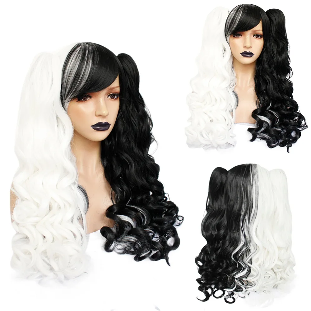 ANOGOL длинные волнистые розовые парики для косплея Лолиты из высокотемпературного волокна коричневые красные черные блондинки многоцветные синтетические парики для косплея 2 хвоста