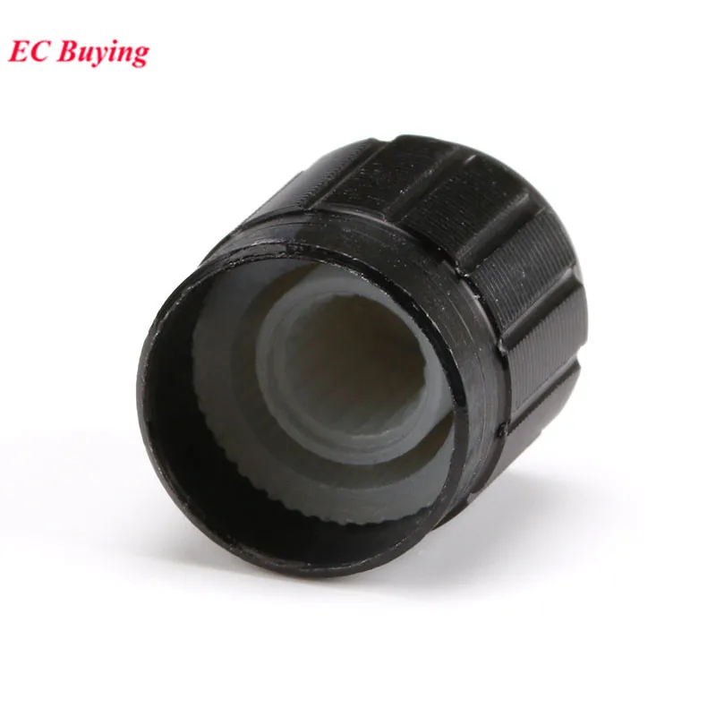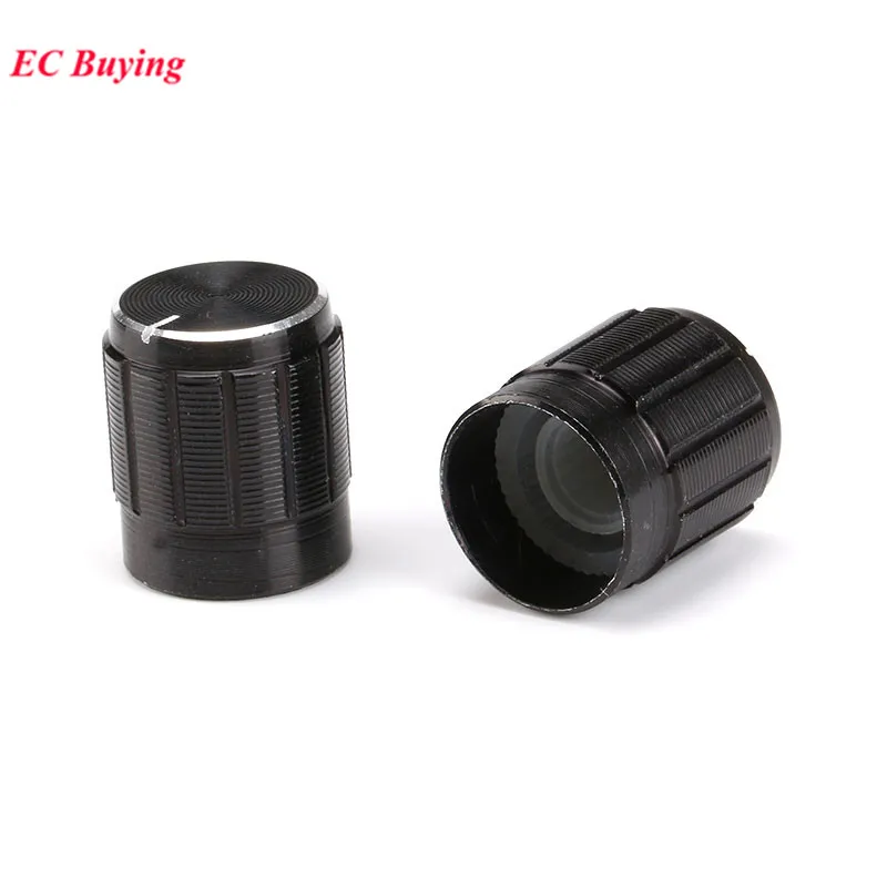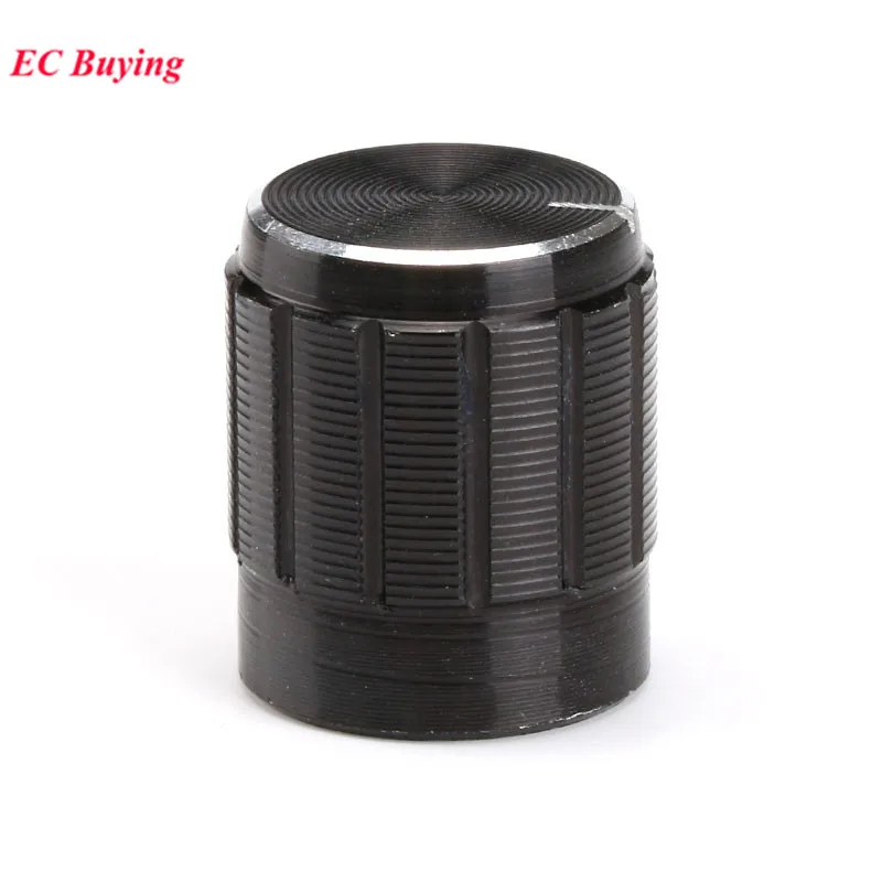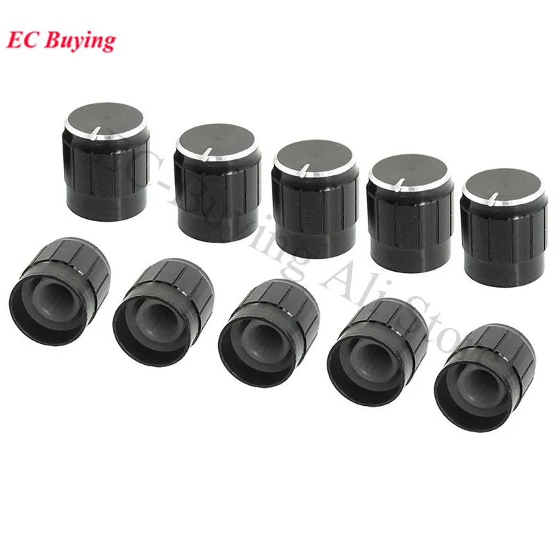 10 шт.лот, черные 6 мм ручки потенциометра, накатанные крышки, рукоятка управления потенциометром вала, диаметр 15 мм x 17 мм, алюминиевая ручка переключателя