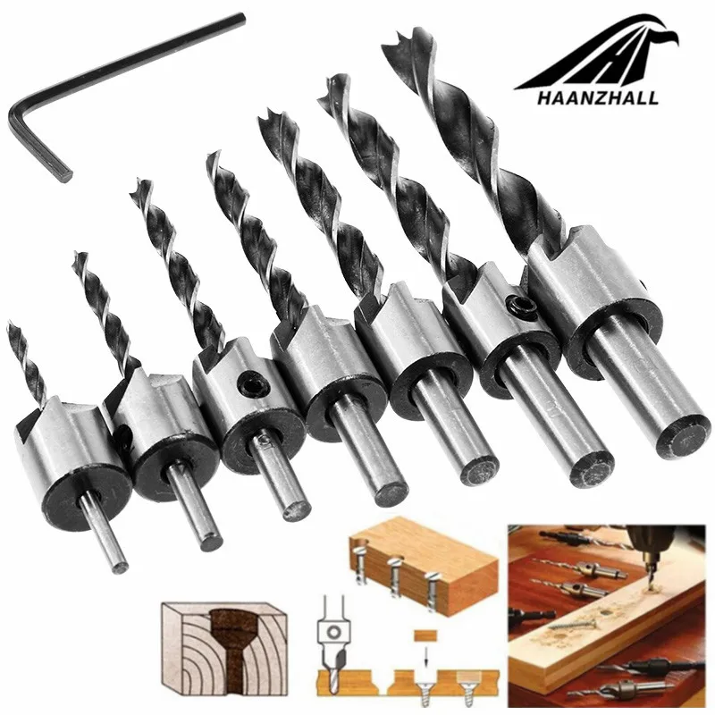 4 шт.лот набор столярных сверл Reamer для деревообработки 5 фасок 3 мм 4 мм 5 мм 6 мм столярная дрель + 1 шт. гаечный ключ