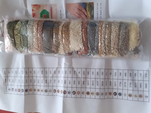 супер быстрая доставка. 35 цветов. пока не собирала. дополню отзыв позже. упакована картина была хорошо. ничего не помялось